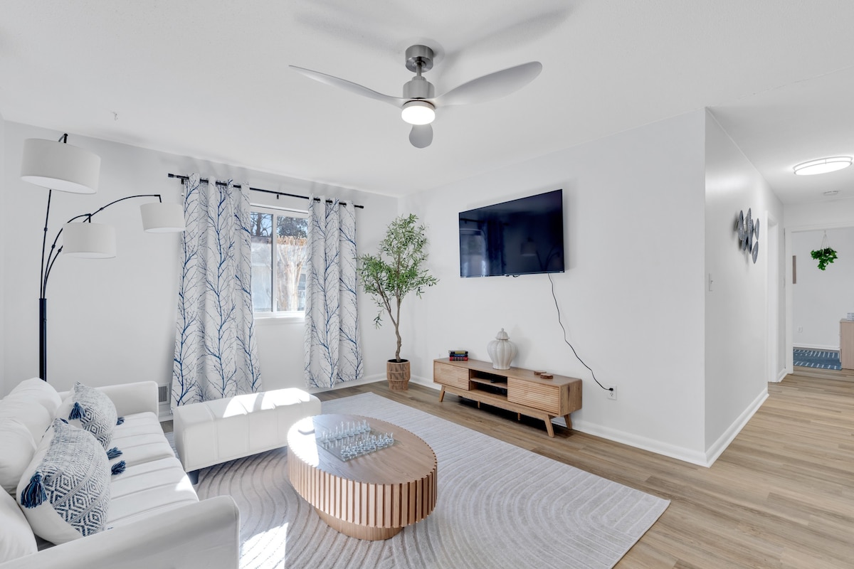 Bersantai dan bersantai di loteng yang unik dan dirancang dengan cermat ini, tempat peristirahatan yang damai yang terletak tepat di pusat Spartanburg! Anda akan sangat menyukai... - Berada di pusat kota Spartanburg - Jarak berjalan kaki ke Pasar Petani, Vcom, Wofford, dan banyak lagi - Dekat dengan pilihan makanan dan belanja yang luar biasa - Tempat tidur dan bantal King yang nyaman dengan seprai lembut - Check - in mandiri yang mudah - Dapur lengkap, cocok untuk masa inap jangka panjang - Balkon berjalan keluar pribadi - Handuk mandi empuk - Wi - Fi cepat -4k Smart TV - Kopi dengan krim dan gula