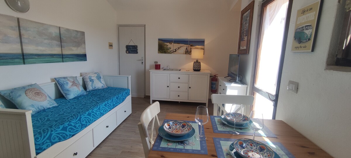 Rumah kecil yang terletak di Porto Pollo “ surga layang - layang dan selancar angin ”. Ini adalah studio yang lengkap. Sangat cocok untuk pasangan atau keluarga kecil, ada tempat tidur queen dan tempat tidur sofa. Dari patio tertutup Anda bisa menyaksikan teluk dan lembah. Dapur dilengkapi dengan peralatan lengkap ( microwave, mesin kopi dan boiler). Pancuran kedua terletak di teras. Wi - Fi, TV, mesin cuci, AC bahkan disertakan. Selain itu ada parkir pribadi. Jaraknya 5 km ke Palau dan 35 km dari Olbia.