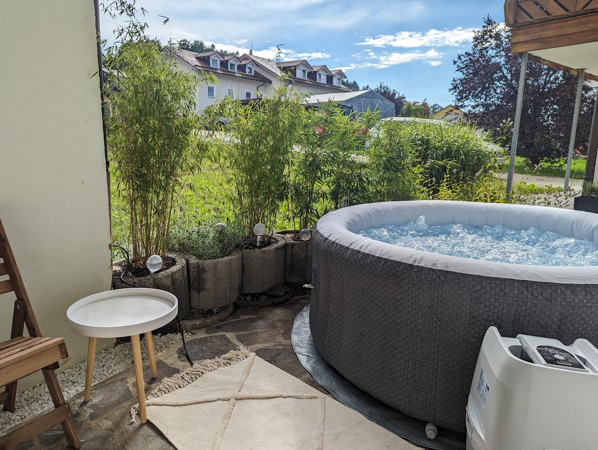 Chalet, yang baru dibangun dalam konstruksi kayu, dilengkapi dengan banyak cinta untuk detail pada bulan Maret 2024. Dibangun dengan gaya modern, tempat ini memenuhi energi tertinggi Persyaratan. Jalur dari tempat parkir Anda sendiri, melalui rumah, ke teras tertutup dengan pemanas listrik baru Bak mandi air panas telah dirancang di permukaan tanah. Di dalamnya Anda bisa menggunakan kompor kayu bakar dan buat sauna Anda sendiri (bebas biaya). Jalur sepeda taman nasional jalur lintas alam yang indah bisa ditempuh dengan berjalan kaki.