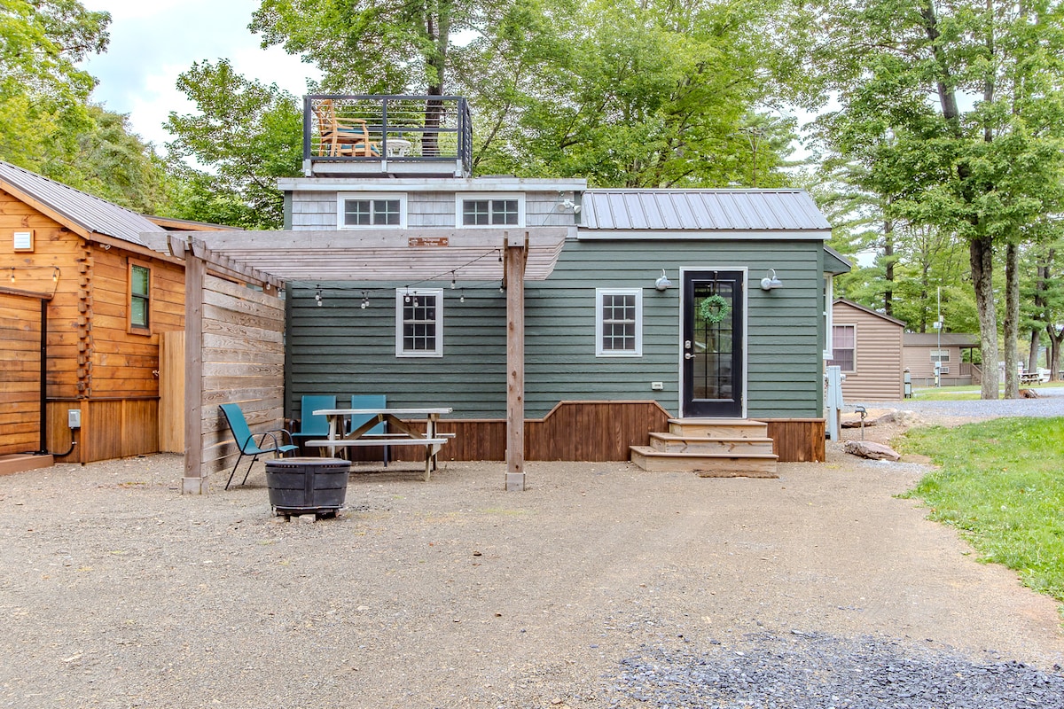 Anda akan menyukai tempat liburan unik ini yang terletak di sudut tenang Seven Mountains Campground dengan akses mudah ke banyak acara dan atraksi perguruan tinggi setempat. Rumah mungil ini memiliki segala yang Anda butuhkan di tempat yang nyaman dan nyaman. Nikmati semua cahaya yang mengalir di jendela yang cukup saat Anda membaca buku atau merasakan kehangatan matahari di dek atap. Lubang api di bawah bintang - bintang di pergola adalah tempat istirahat yang luar biasa. Bersantailah dan lepaskan diri dari kehidupan sibuk yang cepat.