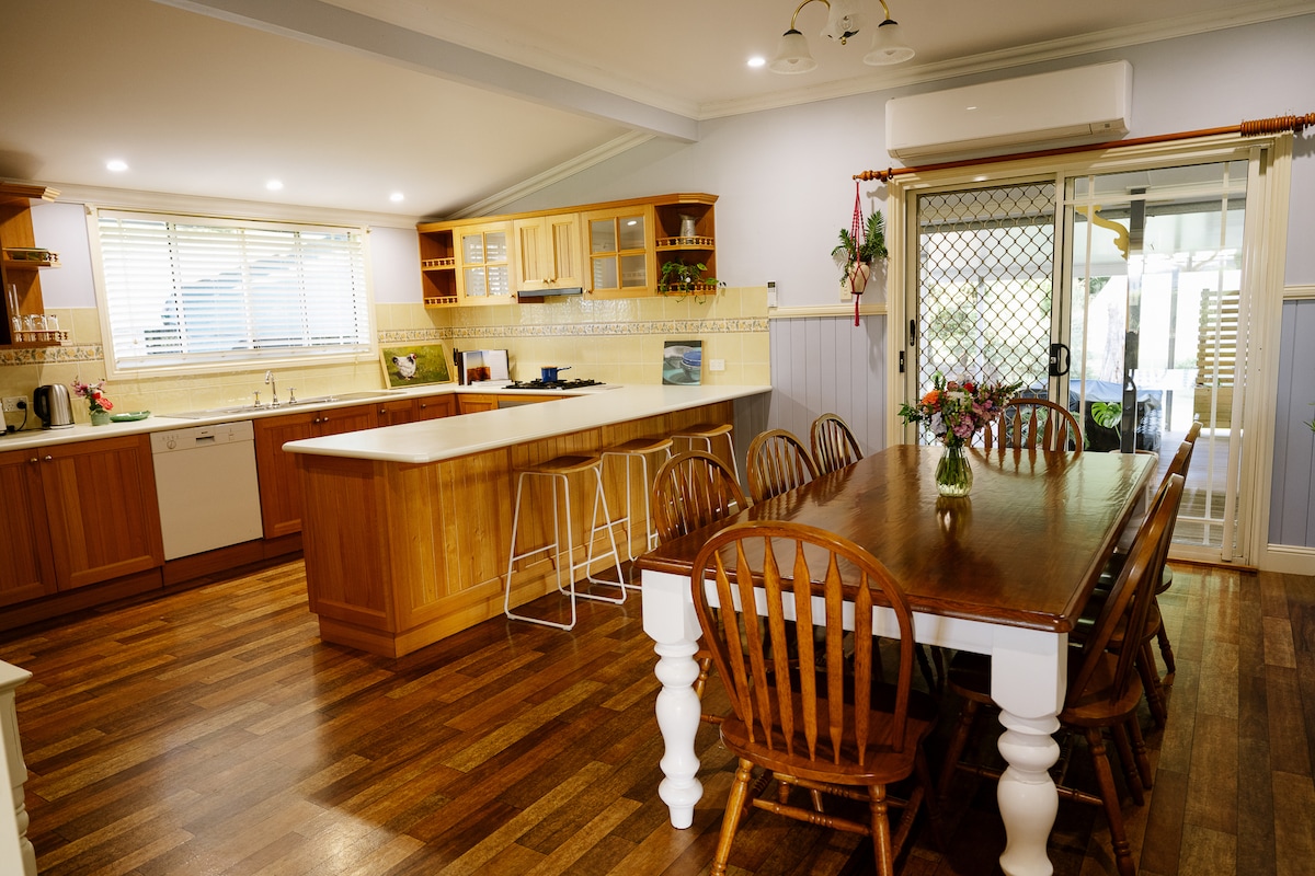 Penuh pesona dan kenyamanan pedesaan, Scenic Rim Farm House adalah basis sempurna untuk petualangan Scenic Rim Anda atau hanya berhenti sejenak dan menikmati ketenangan. Terletak di dalam lahan Scenic Rim Farm Shop, Anda bisa mampir ke halaman untuk menikmati kopi, brekky, atau makan siang, dan berjalan - jalan di ladang bunga Elderflower Farm. TIP: Tangkap pagi - pagi dari lounge tongkat di beranda. Keheningan, simpan nyanyian burung, irrigator yang menyiram tanaman, atau mungkin traktor yang melintas.