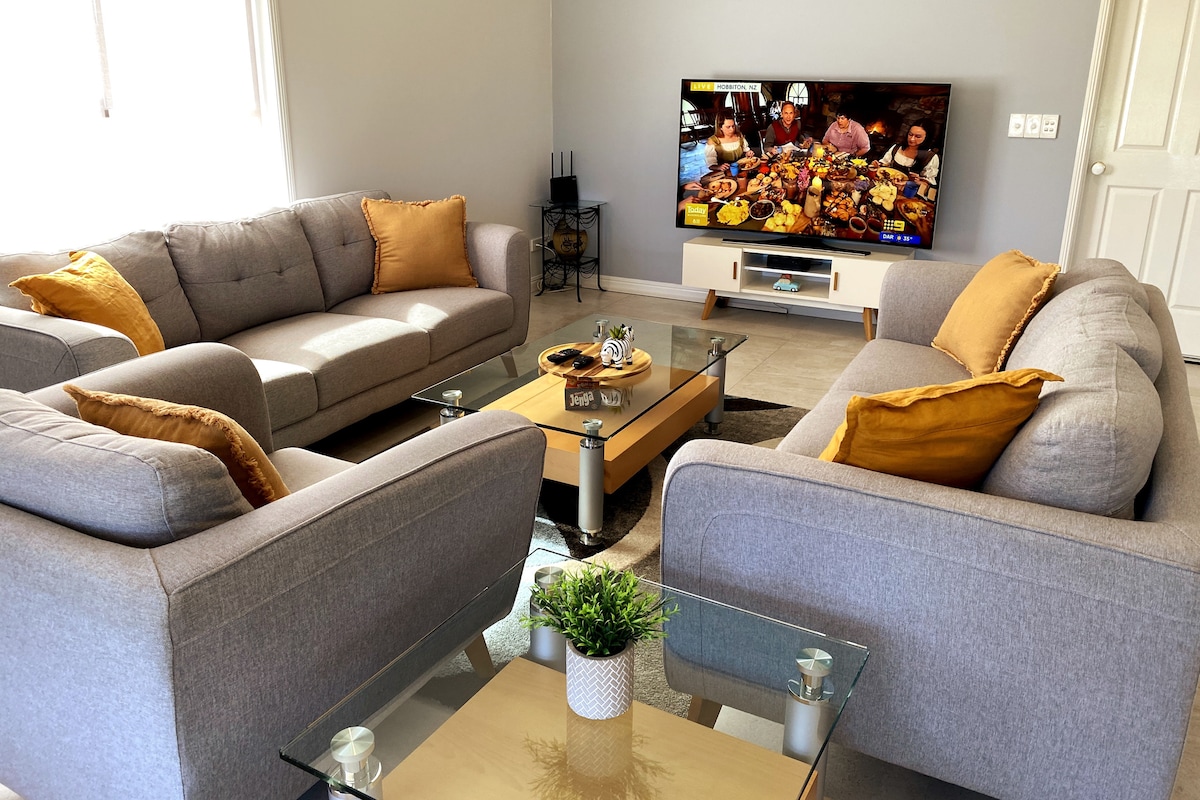 Unit kami lapang, ringan, dan luas. Unit ini memiliki dua pintu masuk dengan akses mudah dari area parkir. Kami memiliki tiga area duduk di luar. Kami memiliki bbq gas. Dapurnya sangat luas dan memiliki semua yang dibutuhkan dapur. Unit ini memiliki mesin cuci. Unit ini tidak ber-AC tetapi memiliki kipas angin langit-langit. Ada meja makan besar dan ruang tv besar. Ruang tidur besar dengan tempat tidur berukuran queen, king single, dan single. Ini adalah unit dilarang merokok.