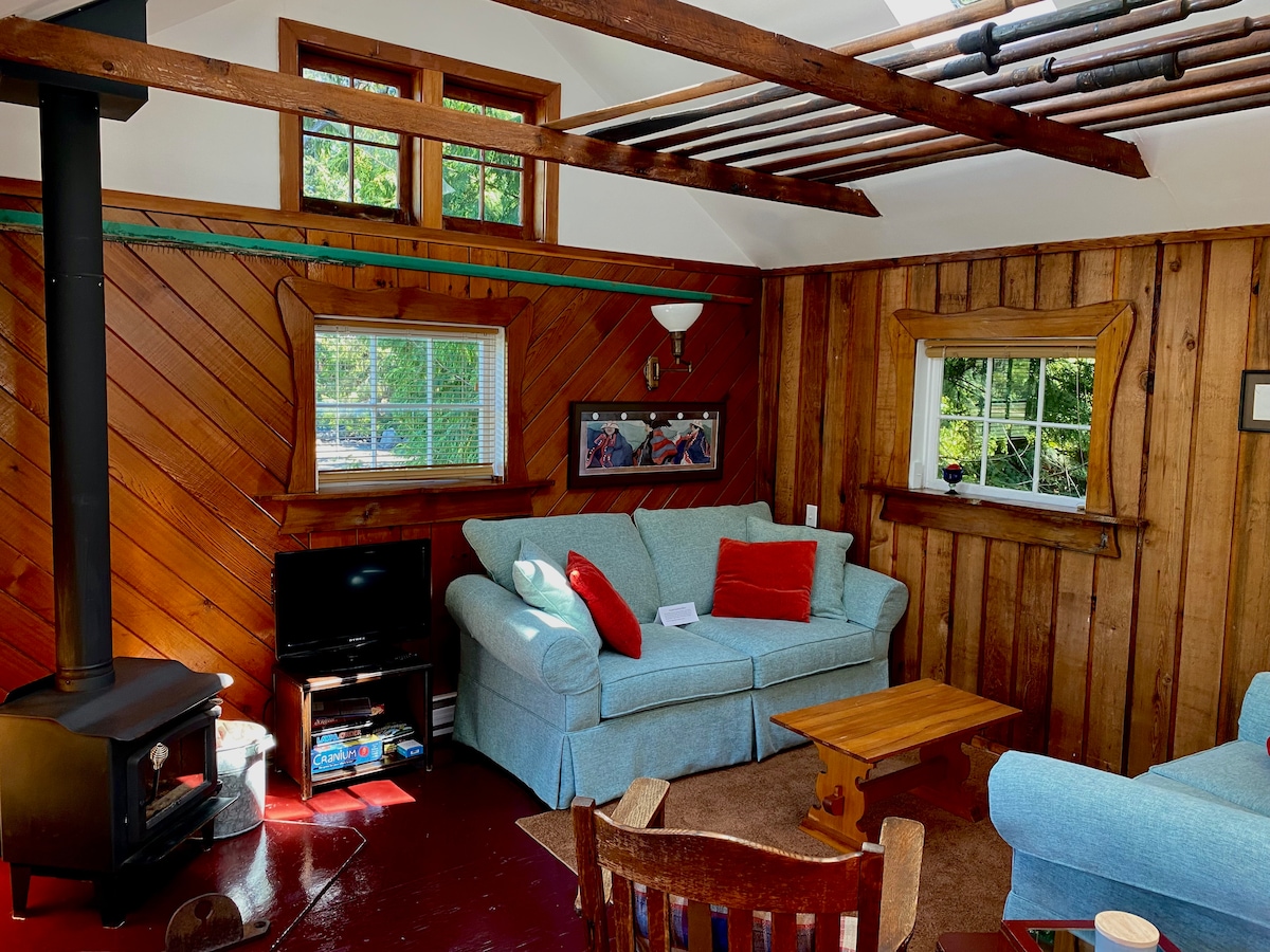 Pondok yang sangat pribadi ini bersih, cerah, dan nyaman. Kompor kayu dan interior kayu alami sepenuhnya dengan langit-langit berkubah membuatnya cerah, nyaman, luas, dan menarik. Kedamaian hutan memberi segar kembali dan bak mandi luar ruangan untuk dua orang sangat menyenangkan. Ada banyak kesempatan untuk melakukan pendakian yang indah, berkayak, bersepeda gunung, dan mengamati paus, dan pada hari-hari hujan, ada berbagai pilihan DVD. Tempat menginap yang luar biasa untuk beristirahat selama beberapa hari. Tuan rumah Anda Jerry dan Christine siap membantu Anda