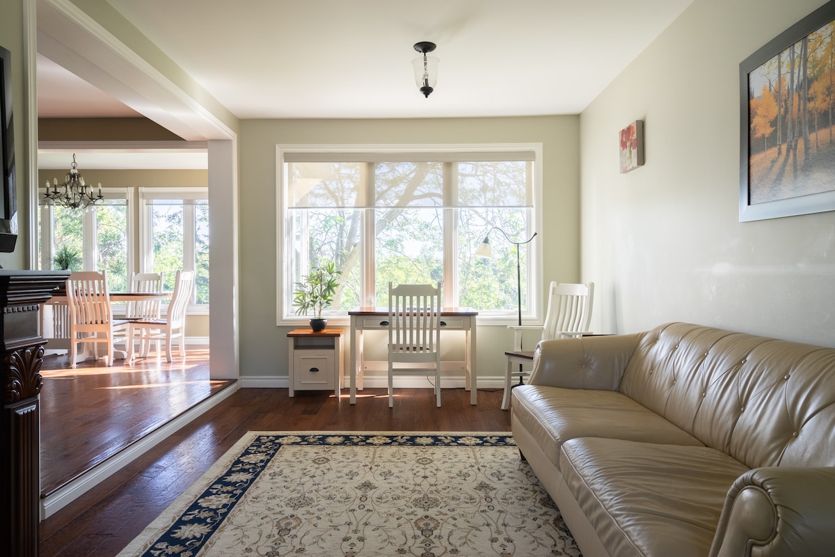 Apartemen studio pribadi yang modern , cerah, luas, dengan pintu masuk terpisah. Kami sekeluarga terdiri dari 3 orang yang menempati lantai atas lantai utama rumah ini. Lingkungan tinggal yang tenang., berjalan kaki ke restoran , pusat perbelanjaan, Rumah Sakit Umum St Catharines hanya berjarak 3 menit berkendara ,halte bus hanya berjarak satu blok. Jalur hiking dan kilang anggur yang bagus di dekatnya, 8 menit berkendara ke Port Dalhousie, 15 menit ke Niagara, 2 menit berjalan kaki ke Ridley College, 8 menit berkendara ke universitas Brock.