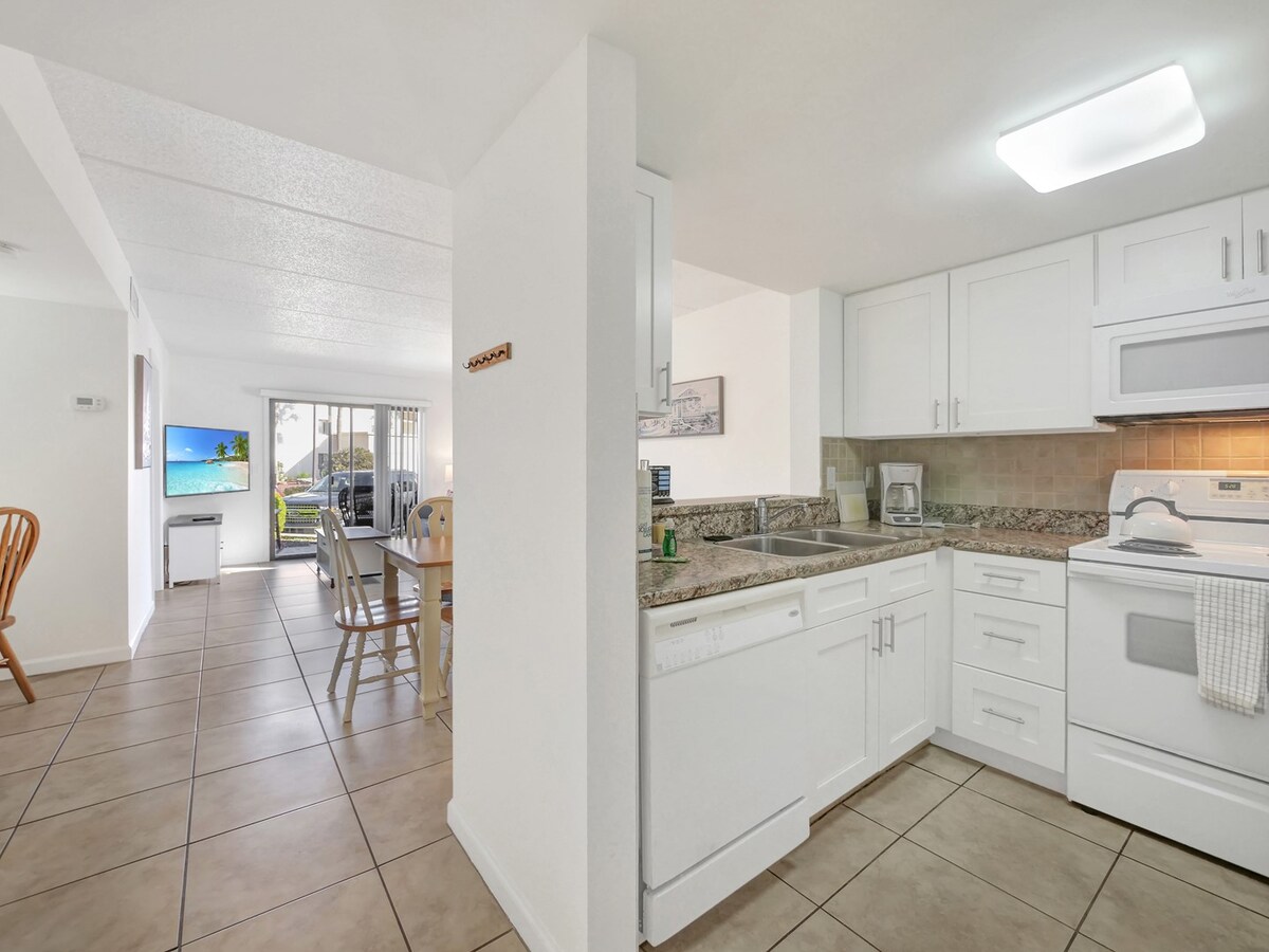 Walk to everything! Beach side 2nd floor unit with lofted ceilings provides ample comfort for 2 couples or 1 family. 2 bedroom, 2 bath with laundry in unit & a wrap around porch. This beach home is spacious and luminous. Sunlight streams in through four sets of sliding glass doors. The decor is also bright and beachy, featuring two stone faced fireplaces (electric). Only 8 lots from the beach and has a gorgeous and newly renovated all white kitchen and dining room.