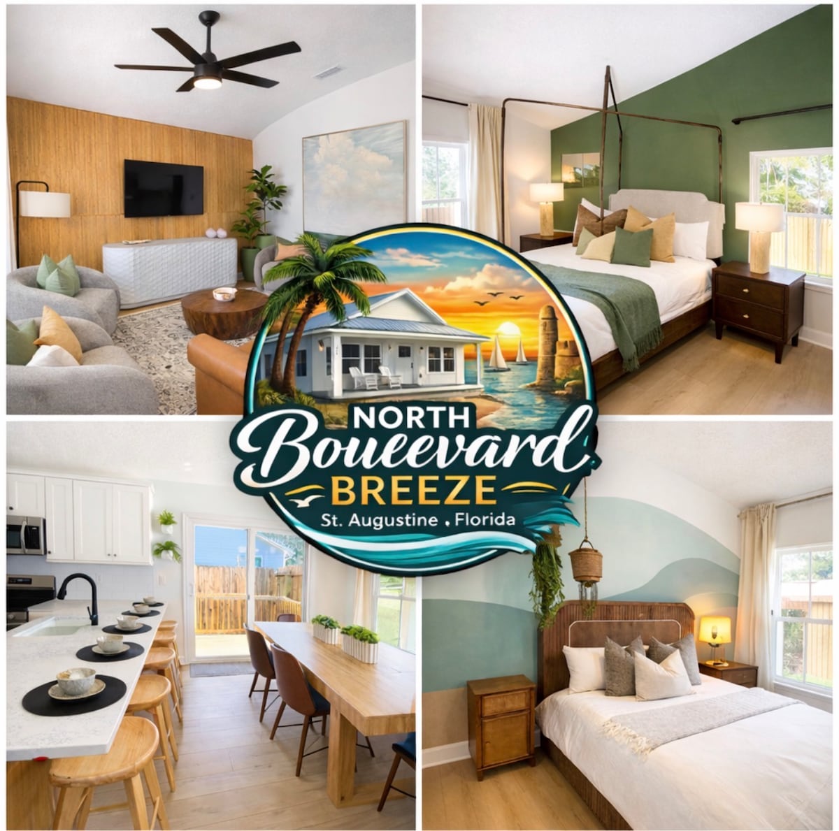 Off Street Parking 2 Min. walk to St George St 5 Min drive to Anastasia State Park Beach 6 Min drive to Fitness Club/Pool High Speed Starlink Internet! Luxury 3-BR Retreat in Historic Downtown. Indulge in a charming vacation rental featuring a spacious living room, gourmet kitchen, and luxury bath. Immerse yourself in the rich history and vibrant culture, with its charming streets and local attractions. Whether seeking adventure or relaxation, this retreat offers the perfect base.