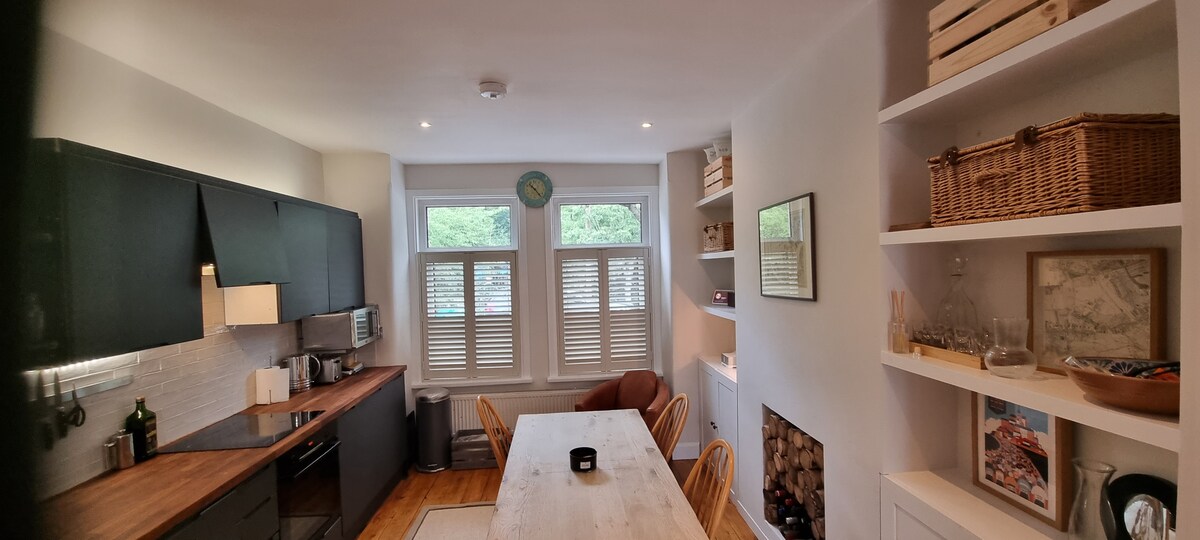 Seluruh flat yang cerah dan damai di Hammersmith yang rimbun. Sangat cocok untuk masa inap jangka panjang (3-6 bulan), baik Anda bekerja dari jarak jauh atau menjelajahi kota. Di gedung yang aman di jalan yang tenang, hanya 5 menit berjalan kaki ke sungai, toko dan kafe. Berjalan kaki sebentar ke Hammersmith Station (District, Piccadilly, Hammersmith & City lines) dengan jalur langsung ke pusat London dan Heathrow. Termasuk dapur lengkap dengan mesin cuci piring, mesin cuci-pengering, smart TV, Wi-Fi super cepat, dan area kerja khusus.
