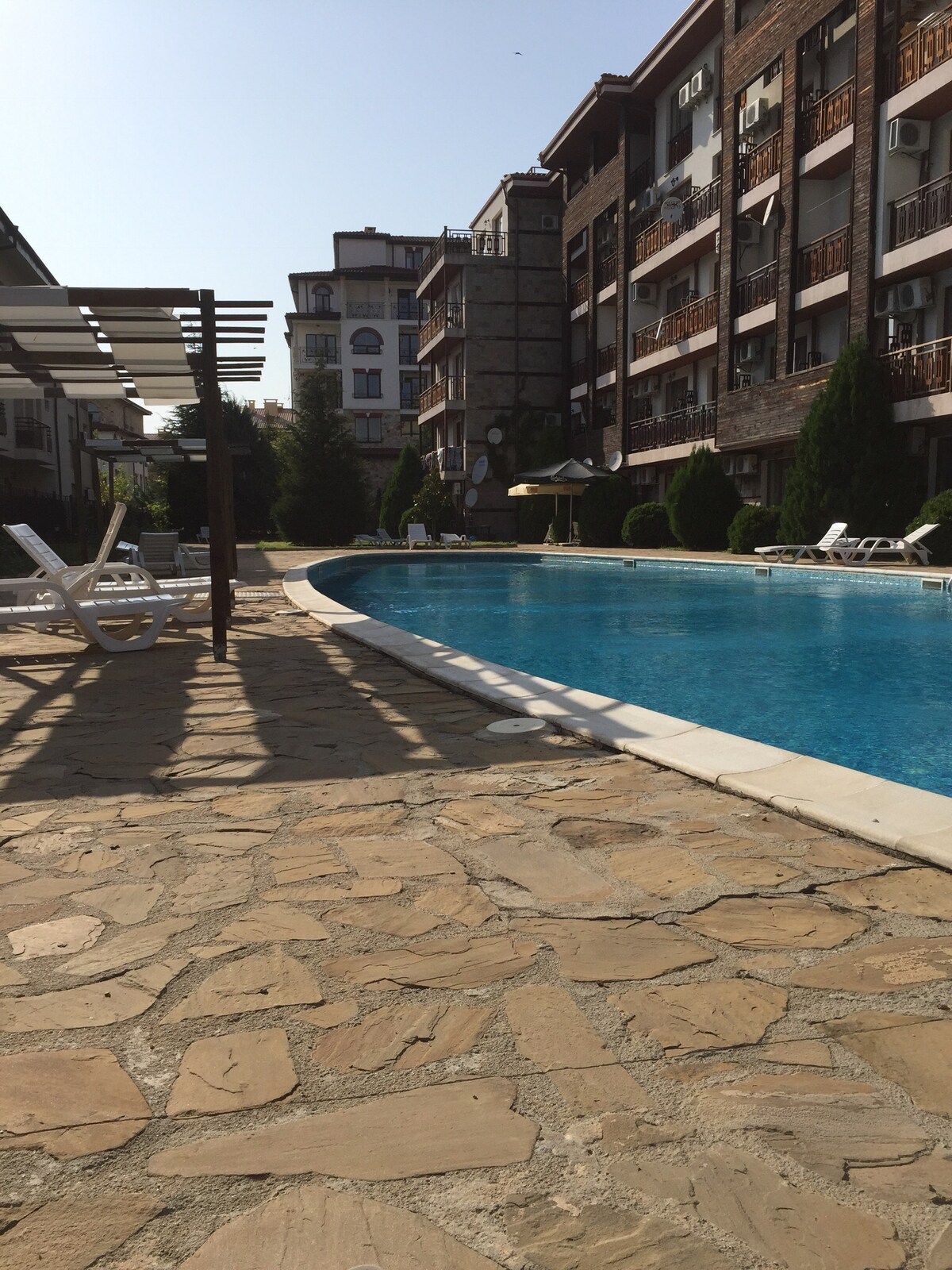 Apartemen studio yang indah di kompleks Panorama Bay 2. Tempat ini nyaman, bergaya, dan berada di lokasi yang luar biasa dekat dengan pantai. Terdapat dua kolam renang dan teras atap. Sebuah supermarket kecil dekat dan ada banyak restoran di area ini. Silakan lihat buku panduan saya untuk lokasi pastinya.