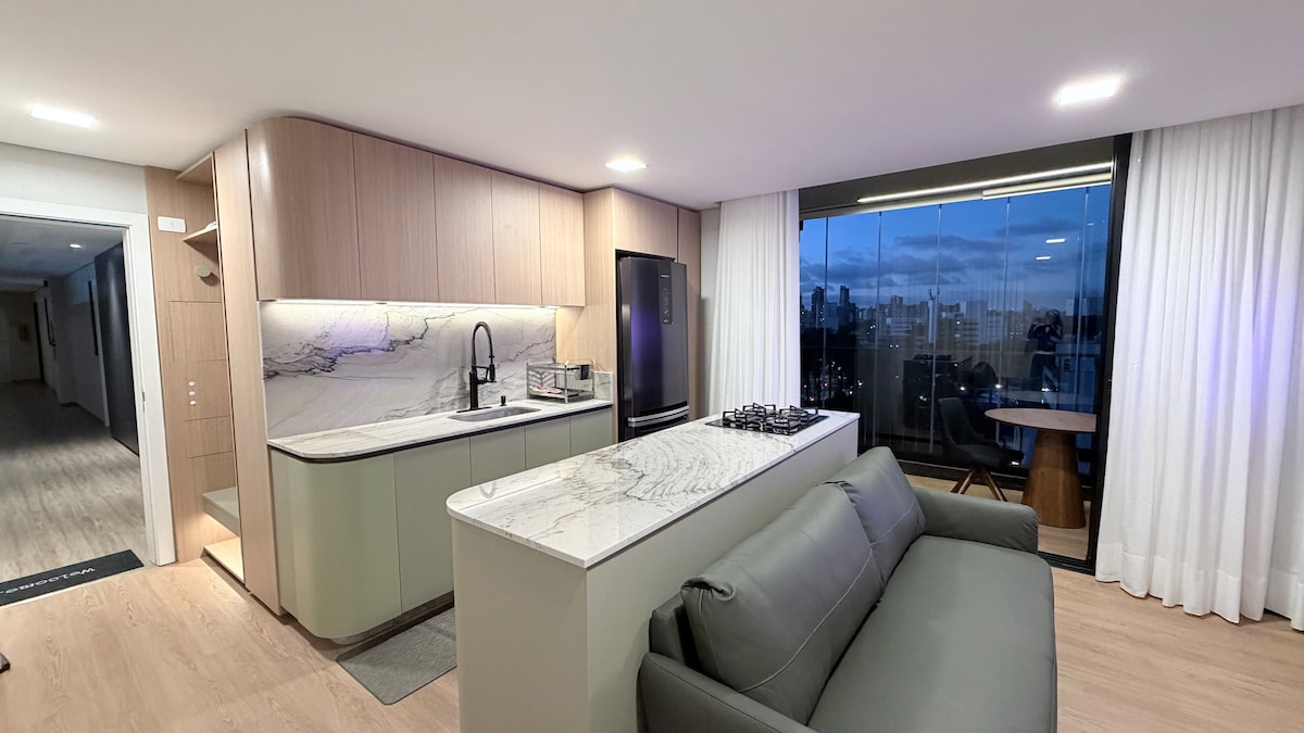 Studio berukuran 20 m², lengkap, nyaman, dan dengan sentuhan pesona Curitiba. Terletak di lantai 10, tempat ini menerima sinar matahari pagi dan menawarkan pemandangan yang tidak terhalang. Tempat ini memiliki tempat parkir gratis di dalam gedung — keuntungan langka di area ini. Hanya 400 m dari Shopping Estação, dengan pasar, apotek, dan McDonald's tepat di depan. Lokasi pusat istimewa, dekat dengan tempat wisata utama kota, dengan akses mudah ke transportasi umum dan hanya beberapa menit dari lingkungan tinggal Batel yang trendi.