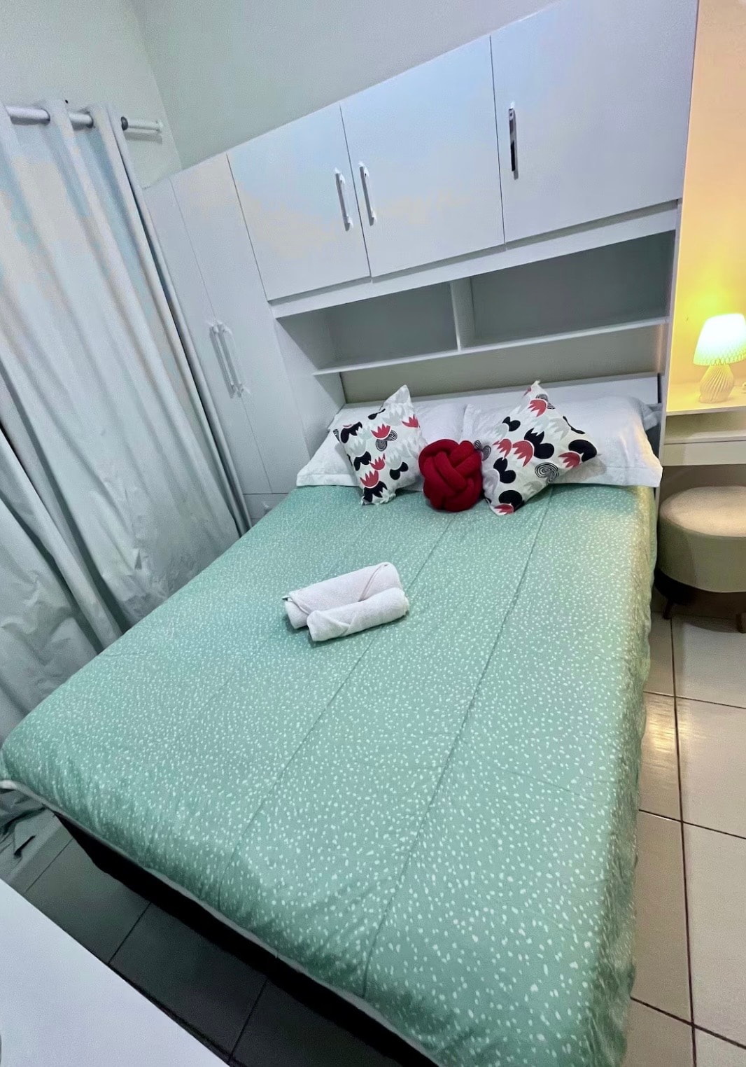 Keluarga Anda akan dekat dengan segalanya dengan menginap di tempat yang berlokasi strategis ini. Kami memiliki kamar tidur besar dengan dua tempat tidur double dan satu kamar mandi. Lokasi yang bagus, dekat dengan balai kota, bandara, Hemopa, Forum, UEPA, dan beberapa bangunan umum lainnya. Semua ruangan ber - AC. Apartemen ini memiliki internet Wi - Fi.