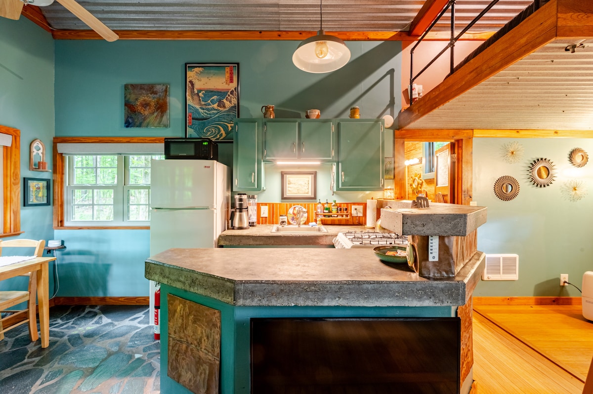 Studio yang terang & lapang ini berada di lahan seluas 2 hektar yang terpisah dan pribadi dari rumah kami. Di lingkungan yang aman, 15 -20 menit ke Athena, tempat ini memiliki teras belakang pribadi yang nyaman. Kami berupaya untuk sadar lingkungan - daur ulang, pengomposan, tenaga surya Memiliki tempat tidur queen, kamar mandi lengkap, internet, TV dengan stik Roku, sudut dapur dengan wastafel, hotplate, microwave, dan kulkas kecil (tidak ada kompor atau pemanggang lengkap). Kipas angin langit - langit di seluruh ruangan, dan mini - split yang tenang untuk pemanas & AC . Kompor kayu tersedia dengan biaya $35 (beri tahu tuan rumah).