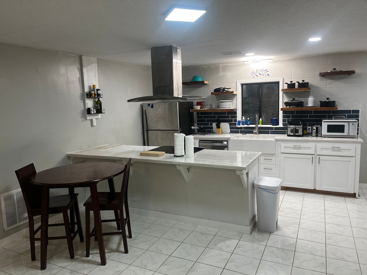 This cottage style house been fully remodeled to include all the conveniences of modern day living. The house is equipped with stainless steel kitchen appliances (including a dishwasher), washer/dryer and patio grill. There are smart TVs available in both the living room and master bedroom. Guests can enjoy Netflix or sign in to any streaming account. There is also high speed WIFI and a WIFI printer located in the Office which includes desk, chair and queen size bed.