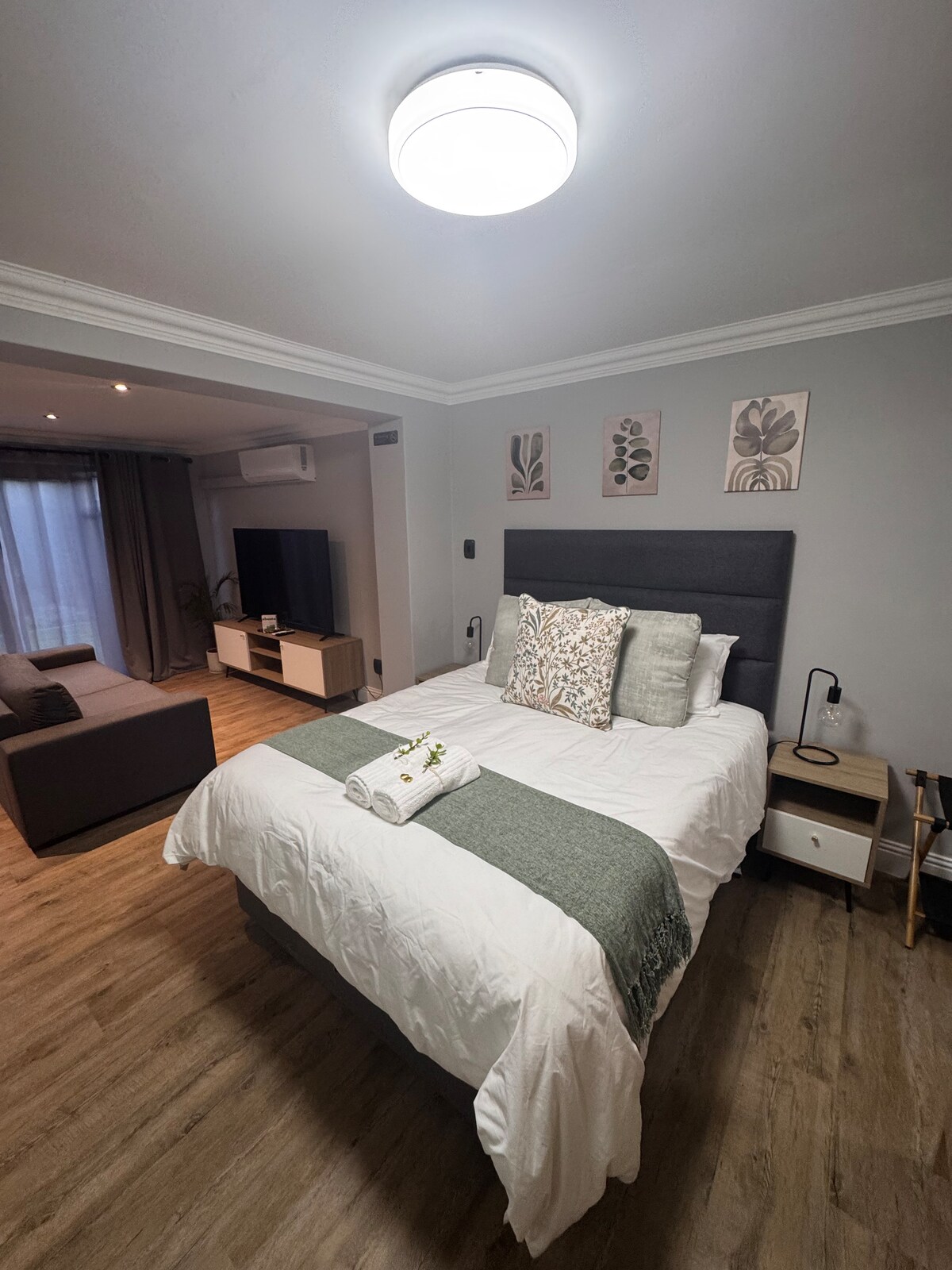 Flatlet kompak dengan pintu masuk pribadi dan ruang makan luar ruangan serta parkir aman di belakang gerbang. Tempat ini menawarkan tempat tidur modern - meja untuk bisnis dan waktu layar rekreasi atau sarapan di tempat tidur. Ruang tamu pinggiran kota ini memungkinkan akses dekat ke mal dan jalan utama namun juga untuk berjalan - jalan indah di kebun anggur terdekat. Baru direnovasi dengan semua perlengkapan dasar untuk siapa saja termasuk orang/pasangan yang bepergian, pebisnis/pebisnis, dan siapa pun di antaranya.