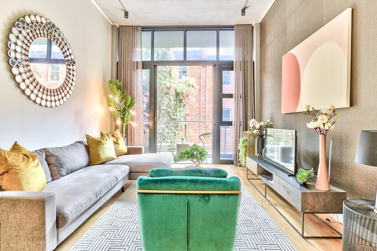 1 Kamar Tidur bergaya ini berlokasi di Sea Point yang trendi, hanya sepelemparan batu jauhnya dari Sea Point Promenade yang terkenal. Apartemen berada di lantai 5 dengan pemandangan yang luar biasa, peralatan SMEG kelas atas, Smart TV, A/C, WiFi cepat, keamanan 24/7, kolam renang bersama, parkir yang aman, dan area braai hanya untuk penghuni. Bersantai di flat modern dan luas ini dan nikmati matahari terbenam di balkon pribadi Anda. Restoran & toko benar - benar berjarak satu blok. Finishing mewah dan inverter cadangan untuk penumpahan beban.