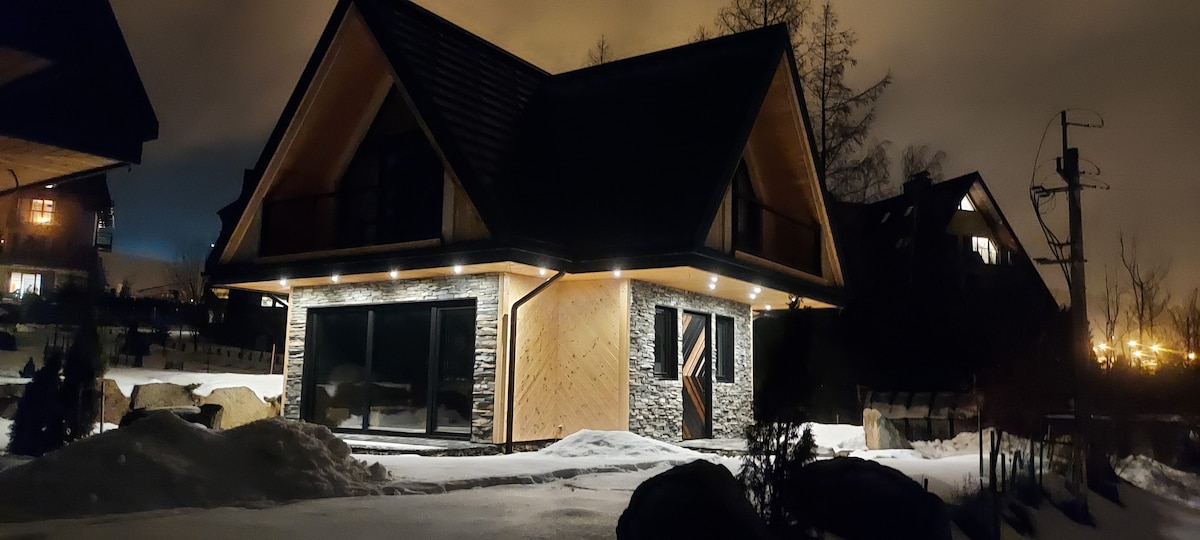 Chalet mewah dengan pemandangan panorama Pegunungan Tatra yang indah untuk 4 atau 6 orang yang terletak di Salamandra (Kościelisko). - dua kamar tidur yang dapat dikunci dengan tempat tidur double, - dua kamar mandi dengan shower (satu tambahan dengan bathtub), - ruang tamu dengan sofa bed untuk 2 orang dengan teras, - dapur kecil dengan mesin kopi, induksi, kulkas, mesin cuci piring, piring. Ada sauna listrik swalayan gratis di luar. Setiap chalet memiliki dua tempat parkir gratis.
