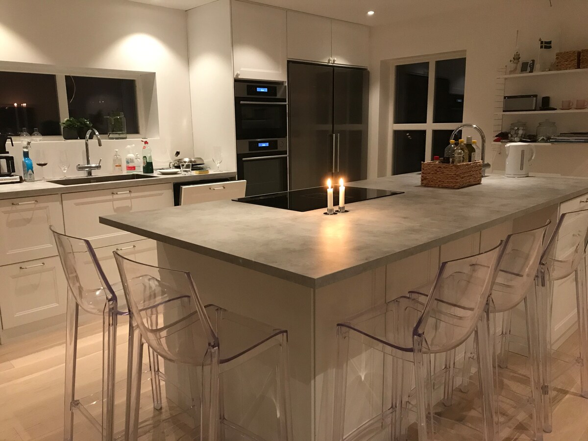 Rasakan rumah kami yang luar biasa. Nikmati kopi pagi dengan lautan yang berkilau di luar. Rumah lengkap dengan 3 kamar tidur dan kamar mandi. Banyak tempat untuk dinikmati atau dimainkan. Berenang di dermaga Anda sendiri 300 meter dari rumah. Karlskrona dapat dijangkau dalam 20 menit dengan mobil atau perahu antar-jemput. Tenda besar dan AC memberikan suhu yang nyaman di dalamnya. Wifi, data tanpa batas. Dapur lengkap, kamar mandi dengan mesin cuci dan pengering. Dapur luar ruangan dengan oven pizza, pemanggang, dan kompor. Seprai dan handuk tidak termasuk. Pembersihan dilakukan oleh tamu
