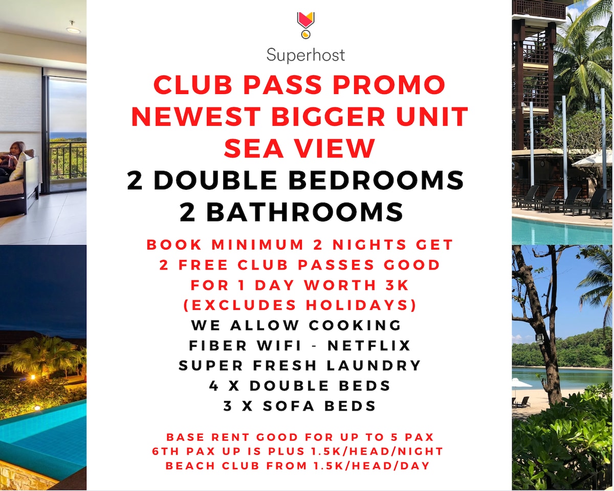 I’m a Superhost with 700+ reviews ✓ We live at Anvaya ensuring your stay is seamless ★ Super clean unit with professional laundry ★ Cooking Allowed ★ WiFi/Netflix ★ Base rate good for up to 4 pax ★ Additional pax @ 1.5k/head/night ★ Beach Club entry from 1.5k/head/day - only paid on days you actually enter the club ★ Beach Club now managed directly by Ayala Hospitality ★ New Head Chef who trained at Enderun ★ Makes a great base to also explore Zoobic Safari, Ocean Adventure & Las Casas Filipinas