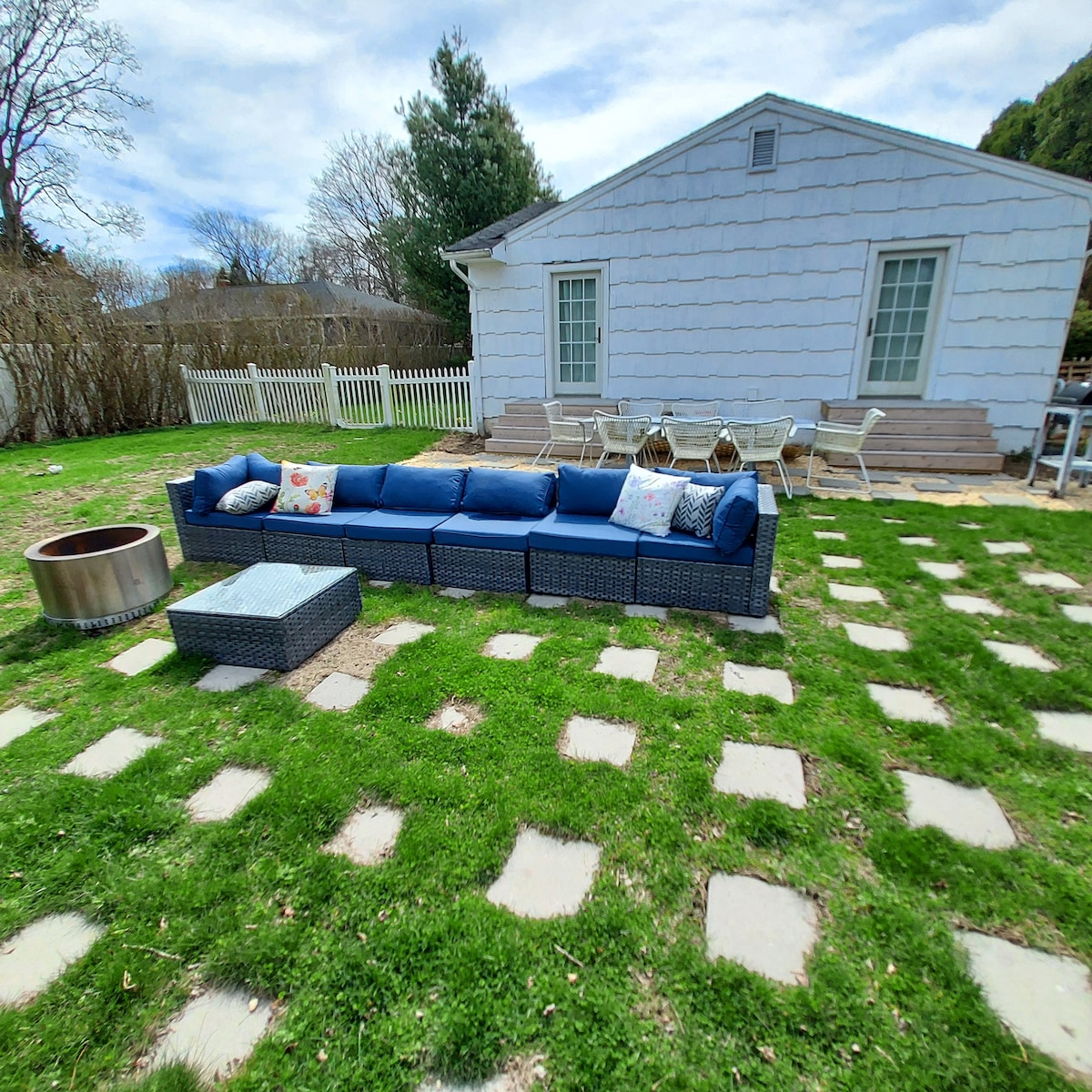 Pondok bertema pesisir yang terletak di tengah - tengah The Hamptons. Tuan Rumah Super! WiFi yang luar biasa. Ruang cerah & nyaman! Cowfish/Canoe Place Inn dekat! Dekat KILANG ANGGUR, PANTAI, GOLF, RESTORAN TEPI LAUT, & PUSAT PERBELANJAAN. Area 4 kamar tidur 2 kamar mandi lengkap & pancuran luar ruangan. Halaman belakang yang luas dengan perapian & dek dengan lampu senar. Lot's to do every season for couples, friends, coworkers & families. Semua yang Anda butuhkan & inginkan di rumah Hampton. TV layar besar/Roku, Foosball. Akses ke kamar tidur loteng dengan tangga.