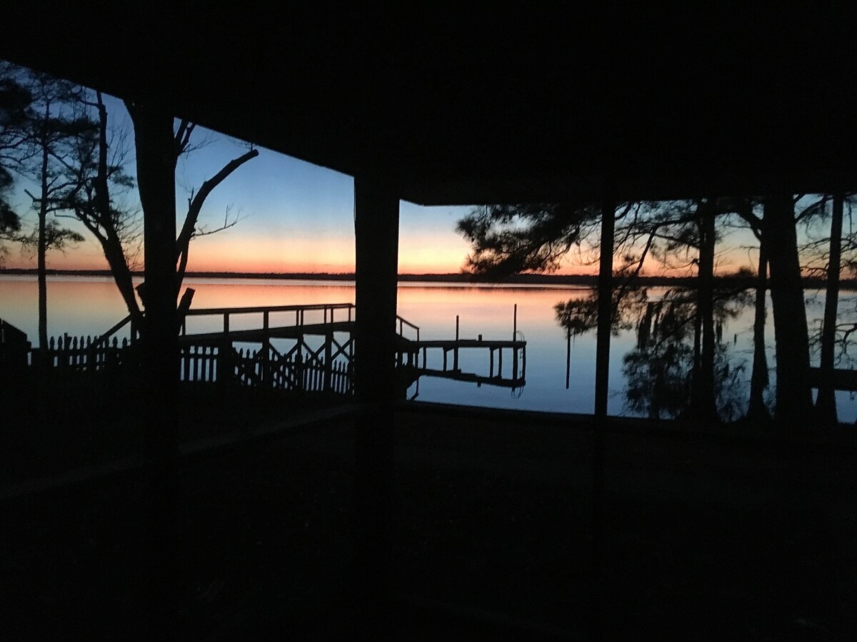 🏝️🌞🐬 Tenang saja di pondok pantai yang unik dan tenang ini yang terletak di hutan dengan suara Albemarle! Permata tersembunyi ini memberikan kombinasi unik dari liburan pedesaan dan pantainya! Satwa liar benar - benar berlimpah di tempat liburan romantis atau liburan keluarga ini - lihat lumba - lumba, berang - berang, penyu, dll. Nikmati 3 kamar tidur yang nyaman, bak mandi air panas baru, dermaga pribadi, kayak, balkon pribadi di setiap kamar dengan pemandangan menakjubkan! Terletak di antara pusat kota Elizabeth City dan Outer Banks. Relaksasi dan ketenangan menanti Anda!🌊🏖️☀️