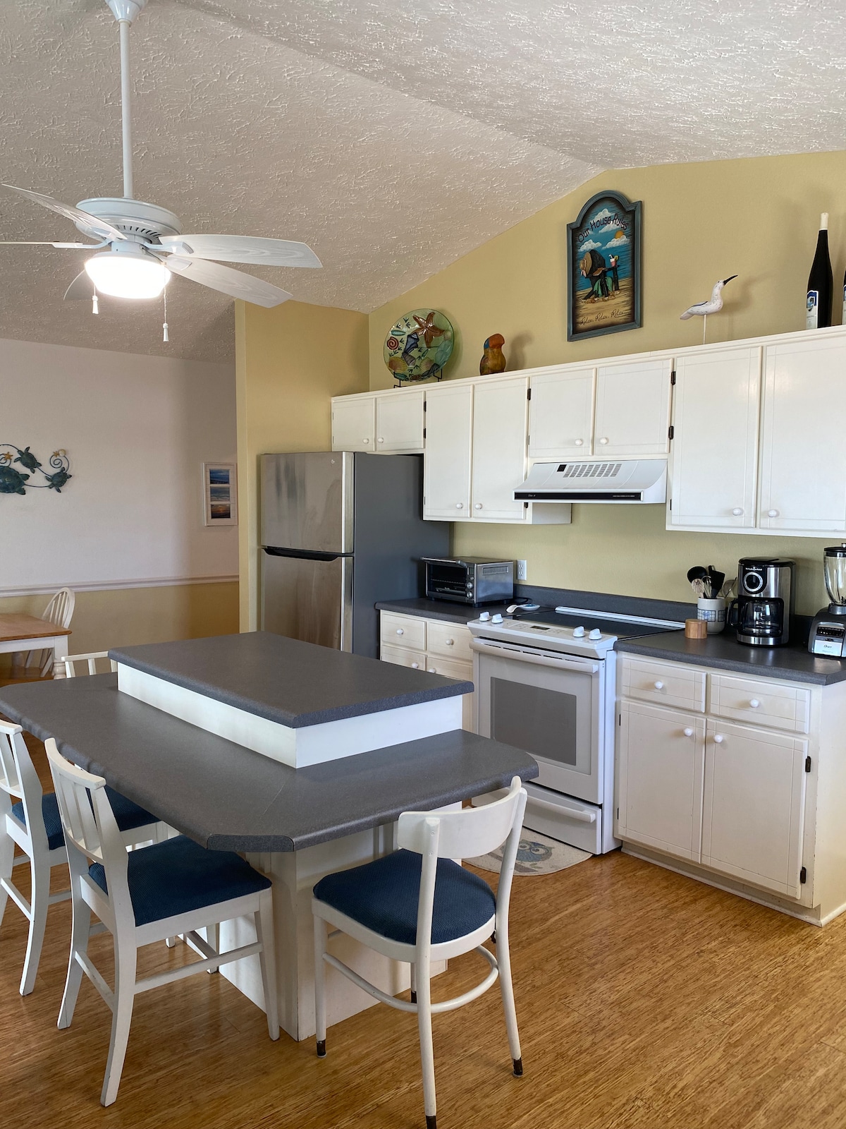 Tinggal di Oceanside Luxury | Kondominium 4BR Tepi Pantai Bangunlah untuk menikmati pemandangan laut yang indah dari balkon master suite lantai 2 pribadi Anda. Cicipi kopi pagi Anda sambil mendengarkan suara ombak yang menenangkan dari 1 dari 2 balkon pemandangan laut. Kondominium 4 BR/3Bath yang luas ini baru saja direnovasi dengan sentuhan akhir kelas atas dan semua kemudahan yang Anda harapkan untuk liburan yang bebas stres. Hanya beberapa langkah dari pintu masuk pantai putih gula pribadi, tempat peristirahatan yang menakjubkan ini adalah tempat liburan pesisir terbaik!