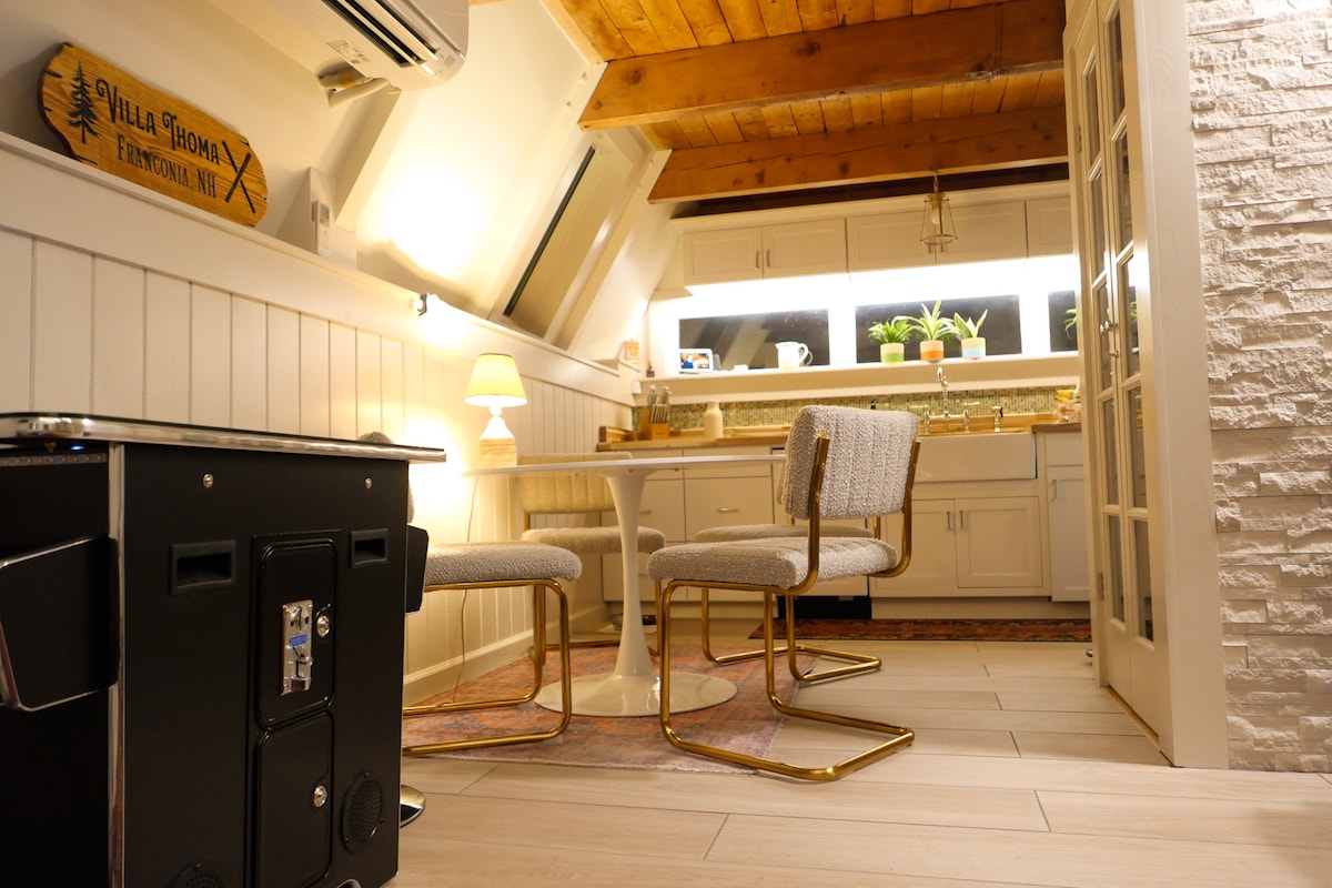 Biarkan kami menjadi tuan rumah Liburan White Mountain Anda yang SEMPURNA! Berliburlah ke Villa Thoma, A - Frame 60 - an yang menakjubkan yang terletak di lahan seluas satu hektar di Franconia Notch yang indah. Lokasi! Lokasi! Lokasi! Direnovasi sepenuhnya dengan perhatian yang cermat terhadap kemewahan, tempat peristirahatan terbaik ini adalah tempat keanggunan bertemu alam! Terletak di jalan terpencil di antara hutan pepohonan yang megah, Anda berada dalam jarak 5 menit dari tempat ski, sepatu salju, hiking, ATV/mobil salju, berenang, memancing, dan berperahu terbaik yang ditawarkan NH!!!