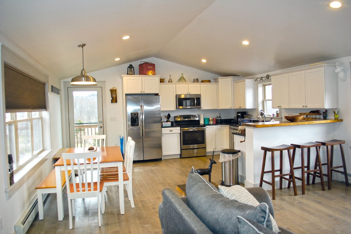 Masuklah ke tempat peristirahatan kota sungai yang baru direnovasi ini. The Barn telah berubah menjadi oasis yang nyaman dan bergaya dengan semua kenyamanan modern. Di dalamnya, Anda akan menemukan studio terbuka yang rimbun dengan langit - langit setinggi 20 kaki. Rencanakan liburan romantis untuk dua orang. Teman berbulu Anda dipersilakan! Baik saat musim dingin bersalju atau malam musim panas berbintang, ini adalah waktu yang tepat untuk berendam di bak mandi air panas dan berkumpul di sekitar perapian.
