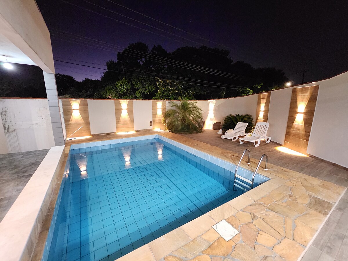 Casa com piscina e área gourmet 🌴 Ideal para lazer, descanso ou trabalho, com total privacidade. Não é permitido festas, eventos ou som alto. 🛏️ Acomodações: • Quarto 1: cama de casal • Quarto 2: 1 treliche + 2 colchões extras • Sala: sofá-cama ❄️ Quartos com ar-condicionado. 🏡 Estrutura: • Piscina privativa • Área gourmet com churrasqueira • Cozinha completa integrada • Garagem 🧺 Roupas de cama e banho inclusas.