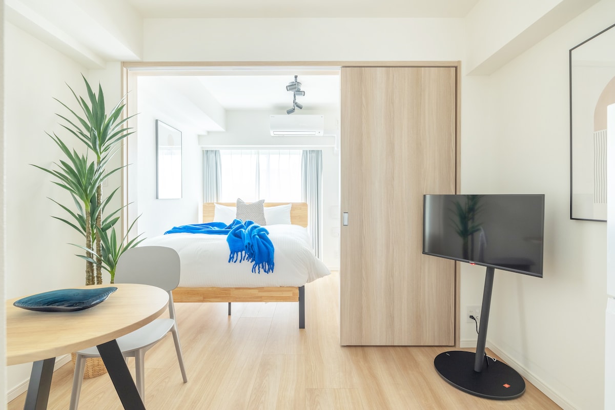 Tenang ・Baru dibangun Studio Japandi|Dekat JR・Kereta|Cuci dan Keringkan|Lift|Penyimpanan Bagasi