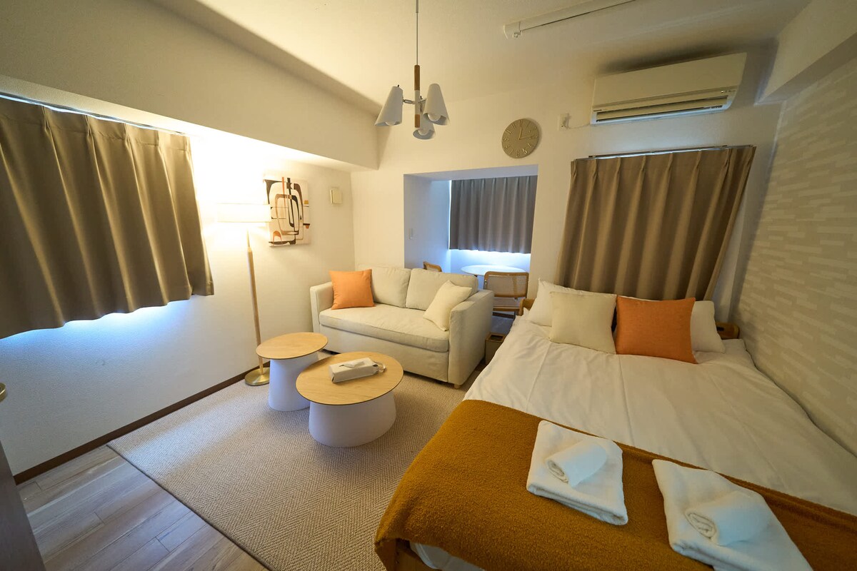 Tenang ・Baru dibangun Studio Japandi|Dekat JR・Kereta|Cuci dan Keringkan|Lift|Penyimpanan Bagasi