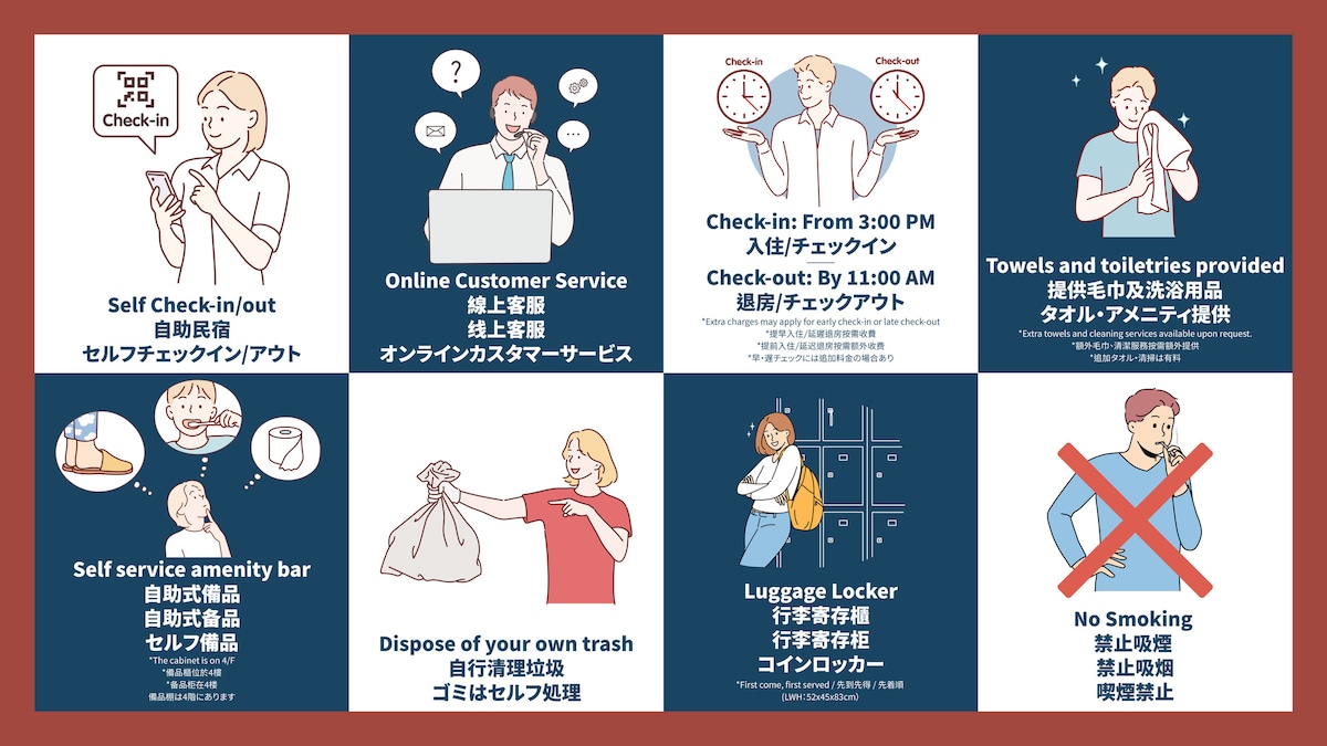 Located in the Dotombori commercial area in the center of Osaka City. It is within walking distance of the Dotombori,Shinsaibashi and Namba commercial area in Japan.There are more than 30 rooms, which have the same interior.we have pots, pans, plates, bowls, spatulas, induction cooker, no knives (for safety reasons), microwave oven, refrigerator and so on.