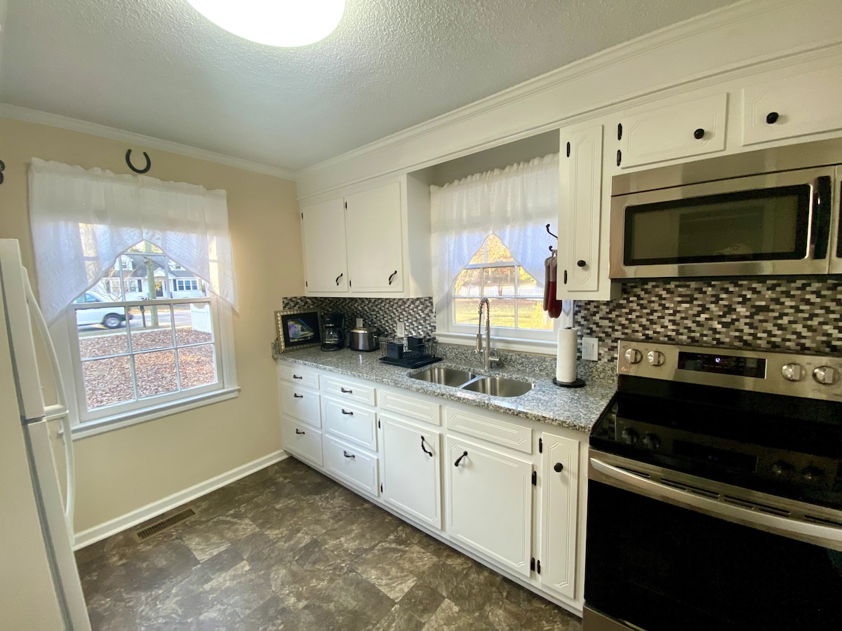 Mundur ke rumah 3 kamar tidur bersejarah yang baru direnovasi ini yang menyediakan fasilitas modern sambil membangkitkan pesona masa lalu. Terletak di jalan yang teduh dan ramah pejalan kaki di area pusat kota Sumter yang berharga, yang dapat menampung 6 orang dengan nyaman. Sangat nyaman untuk pergi ke Shaw AFB. Kami dengan senang hati akan menerima tamu untuk masa inap yang lebih lama, jadi jika kalender diblokir, harap hubungi kami untuk bertanya :)