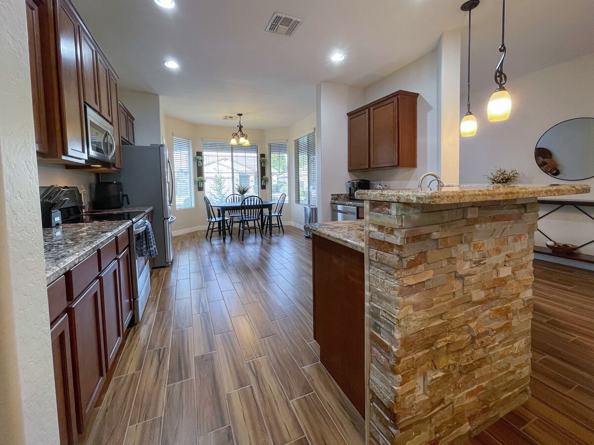 Our home is the perfect escape for families, couples or friends. A three-minute walk to a large park with long stretches of greenbelts is perfect for a fun afternoon to play, picnics under a tree, or a nice walk on one of the many walking paths located throughout the neighborhood. We are minutes away from Lake Pleasant Regional Park where you can rent boats, jet skis and paddle boards. Looking to get a hole in one? We are surrounded by beautiful golf courses including Quintero Golf Club.