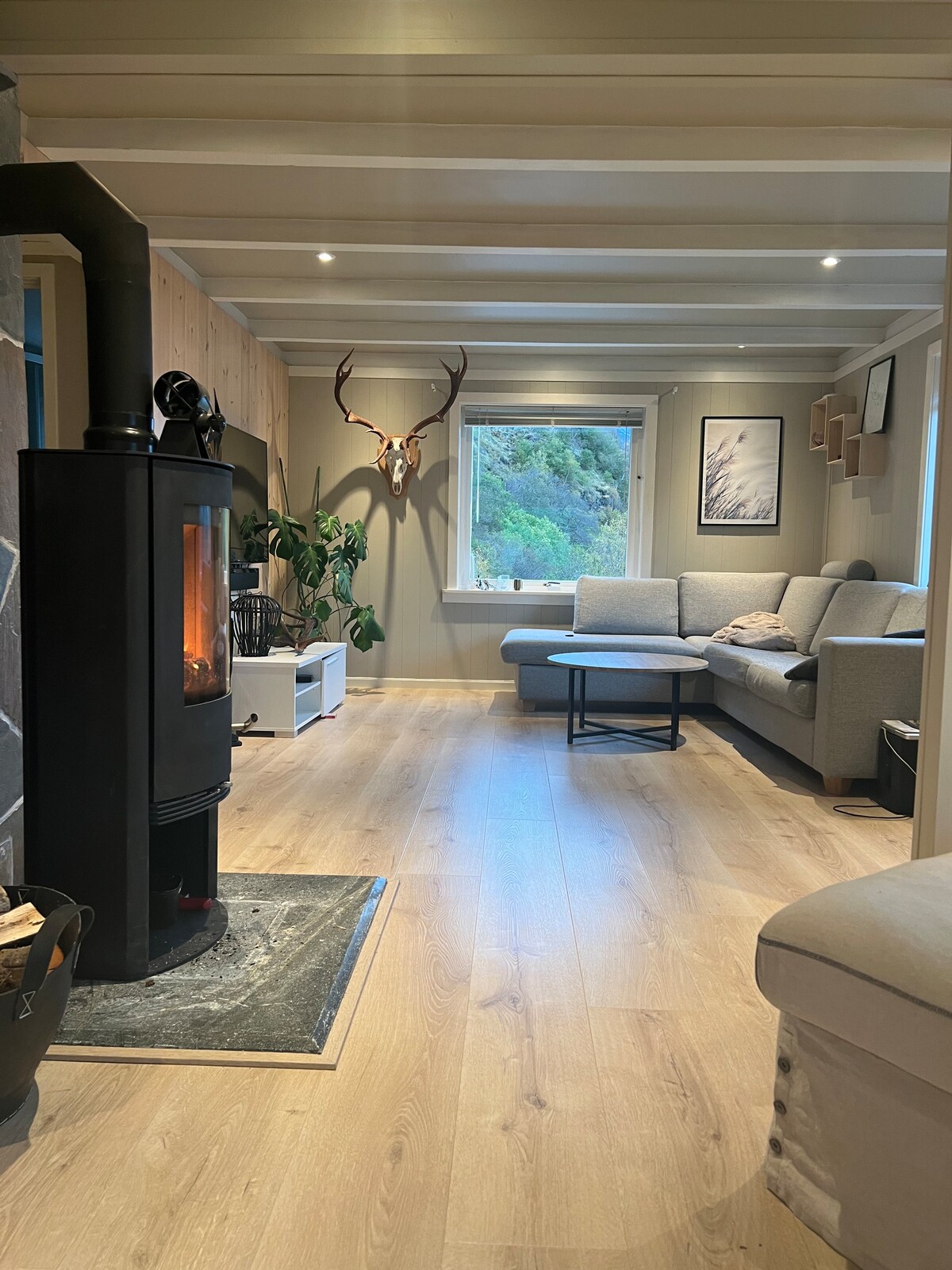 Pondok dengan pemandangan yang luar biasa di lingkungan yang tenang. Jaraknya dekat dengan fjord dan perahu dayung tersedia selama musim panas. Pondok ini memiliki dapur kecil, kulkas, oven kecil, dan microwave. Tidak ada mesin cuci piring. Kamar mandi dengan shower dan toilet, kabel pemanas di lantai. Ruang tamu dengan sofa, meja makan, dan perapian yang nyaman. Kamar tidurnya sangat kecil. Beranda tertutup dengan furnitur luar ruangan. Seprai dan handuk tidak disertakan. Saat bersalju, Anda harus parkir di jalan dan berjalan 50 m terakhir ke kabin. Parkir di dekat kabin di musim panas.