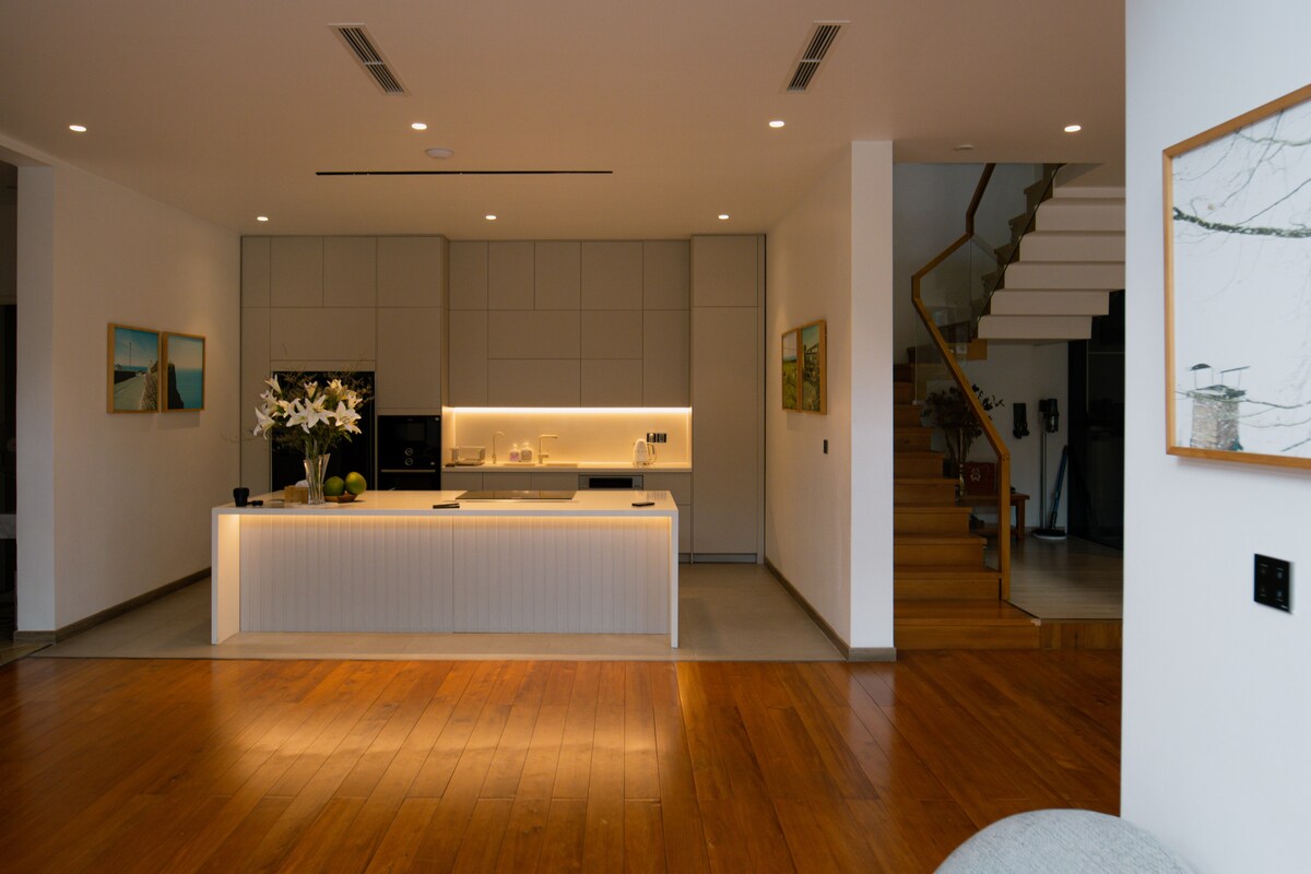 Duplex yang luas | 4 Kamar Tidur Ensuite | Kolam Renang Pribadi di Atap HORIZON HAVEN Rumah kami adalah suite 2 lantai yang bisa menampung hingga 8 tamu & anak-anak dengan nyaman. Tempat ini memiliki pintu masuk, kolam renang, taman, & dapur sendiri—untuk Anda nikmati. Terletak di lingkungan yang tenang dan mewah di Distrik 7, duplex ini berada di gedung dengan hanya 1 unit lainnya. Langkah keluar ke taman yang tenang dan danau ekologi yang indah. Dalam jarak berjalan kaki, Anda akan menemukan berbagai restoran, kafe, spa, & supermarket LOTTE.