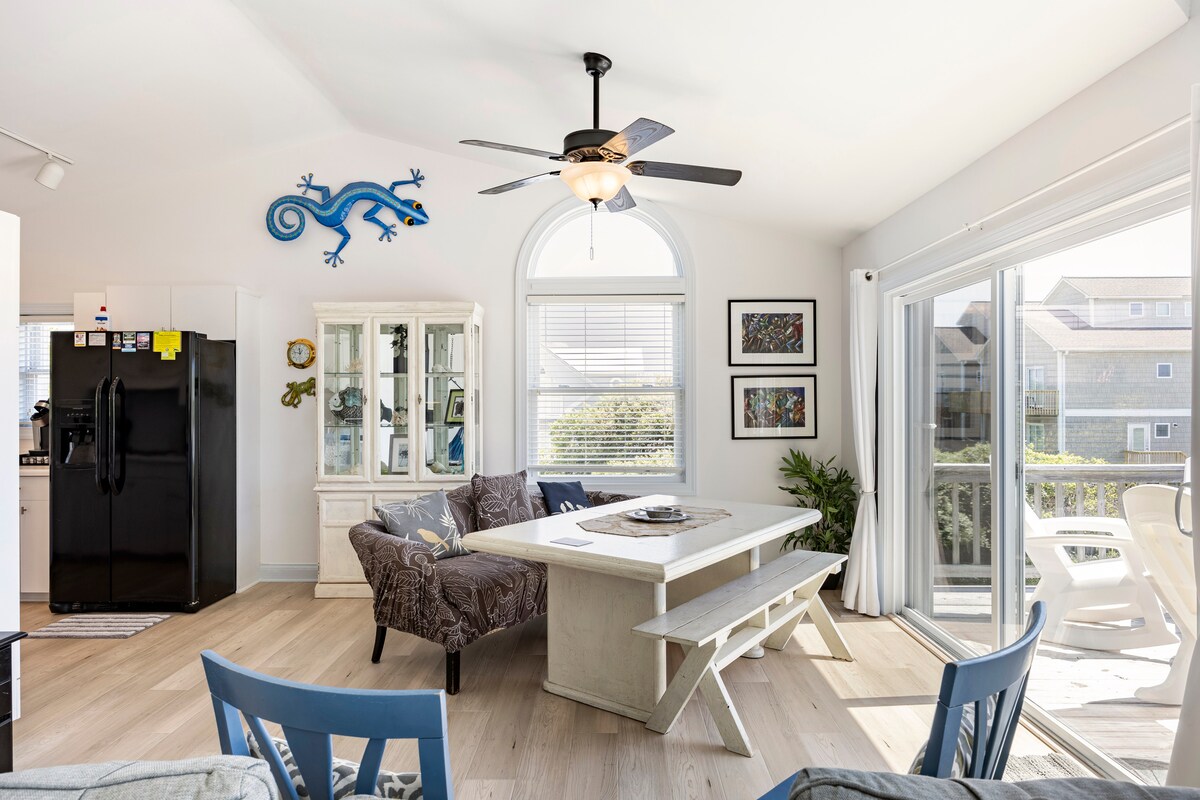 Bersih dan cerah, dengan laut yang hanya berjarak 100 langkah, rumah yang didekorasi dengan indah ini sangat cocok untuk liburan pulau yang santai bersama teman atau keluarga! Nikmati menyaksikan ombak dari area tamu dan dek, berendam di matahari terbit di pantai, atau bersantai di pantai yang hanya beberapa langkah dari rumah. Atau, pilihlah berjalan kaki sebentar atau bersepeda di jalan - jalan lingkungan yang tenang ke jalur air intracoastal untuk kayak dan papan dayung. Nikmati surga unik yaitu Pulau Topsail di rumah yang indah ini!
