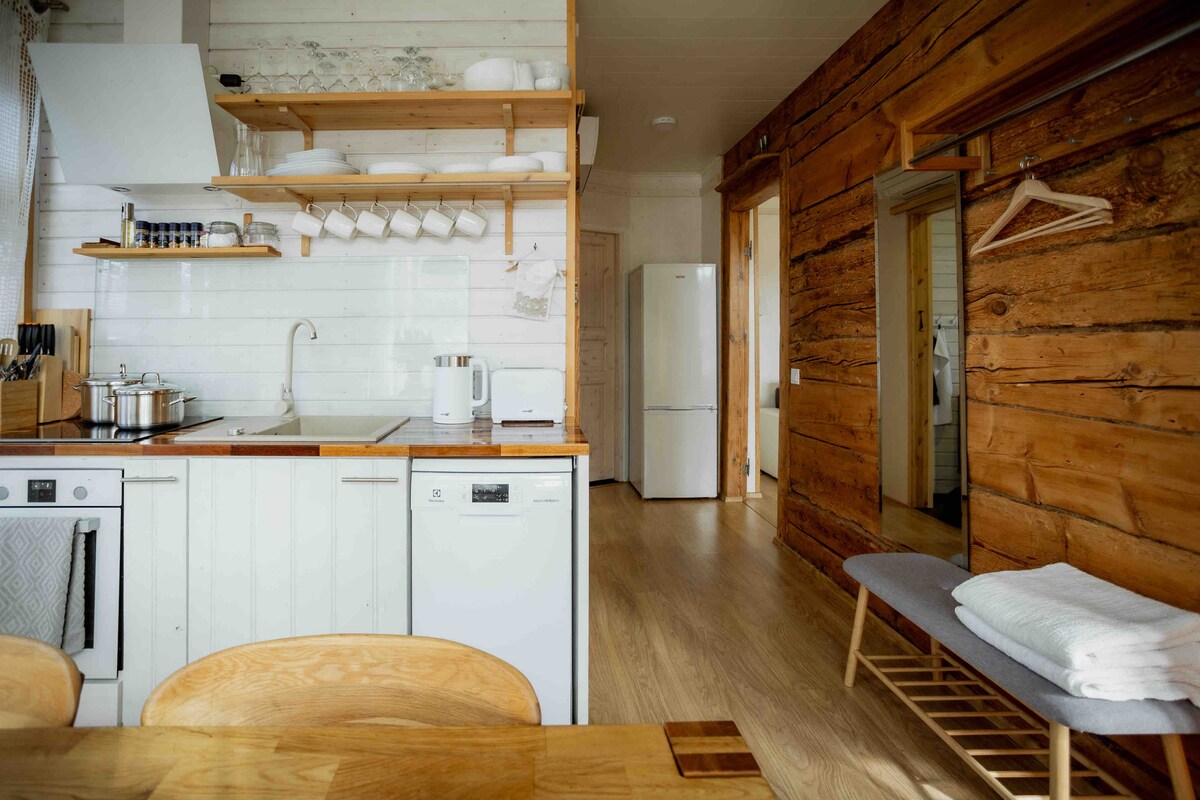 Our small house is located in the private harbor of Ruhve.The 180-degree view of the sea offers wonderful emotions,peace and a perfect opportunity to switch off from everyday life. The house has double bed,a sofa that folds out, a kitchenette,a toilet and a shower.There house is also equipped with Wi-Fi and air conditioning. The price includes the possibility of using a sauna with sea view. For an additional fee,it is also possible to use a hot tub and two SUP boards.
