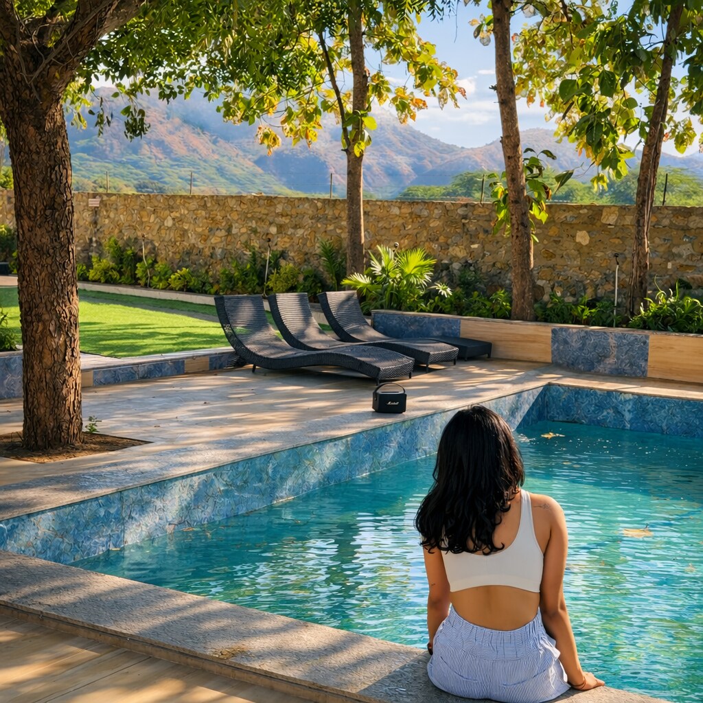 Escape to Seranova Villa, a private luxury retreat in the hills of Abu Road, perfect for hosting 25+ guests. Designed for group stays, offering spacious bedrooms with modern bathrooms, large indoor living areas, and huge lawn area to relax and unwind together. Enjoy by the pool, dine under open skies, and unwind in garden and rooftop gazebos. Whether it’s a family vacation, friends’ getaway, reunion, or celebration, We offers privacy, comfort, and a true “home-away-from-home” experience.