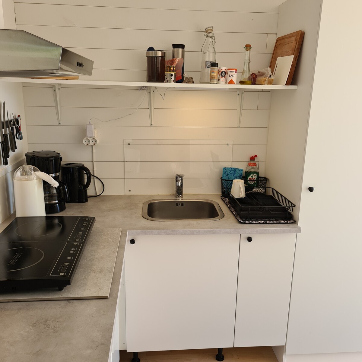 Apartemen kecil untuk 2 orang (tempat tidur bayi untuk anak di bawah 2 tahun dapat diatur). Toilet dan wastafel ada di dalam apartemen dan pancuran mandi (Akhirnya siap) di rumah/Boden. Anda juga bisa mencoba pancuran luar ruangan di musim panas di halaman belakang kami. Sekarang ada dapur dengan wastafel dan kipas angin dan kompor induksi dengan 2 piring, namun sayangnya belum ada oven.