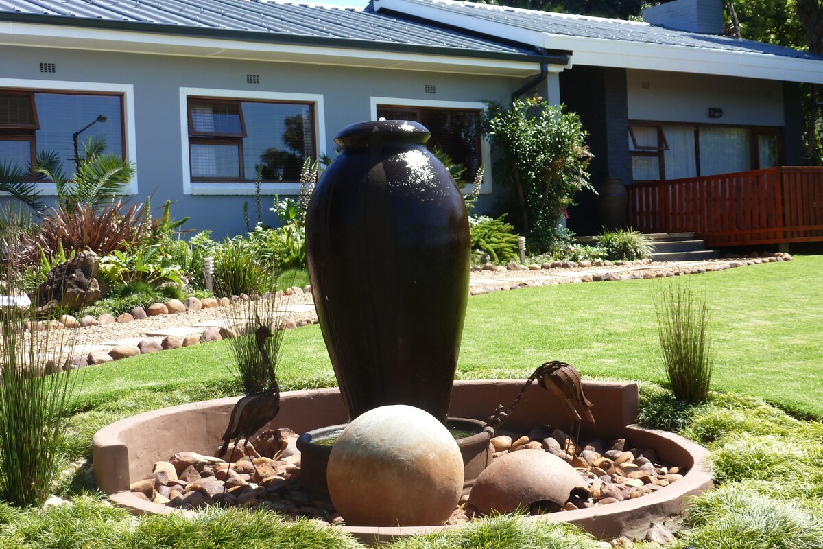 Temukan pondok taman pribadi yang tenang dan tenang di bawah pohon kayu kuning tua. Kami dikunjungi oleh berbagai suara burung dan ayam pagi berkokok untuk mengingatkan Anda tentang kehidupan pedesaan yang terbaik Kami dengan senang hati akan menawarkan tur burung berpemandu atau berjalan kaki di gunung ke air terjun Marloth atau perjalanan permainan Bontebok Park di tepi Sungai Breede yang menakjubkan. Swellendam adalah kota yang indah, yang kami banggakan. Semoga Anda bisa memesan dan selamat menikmati masa inap Anda di tempat kami.