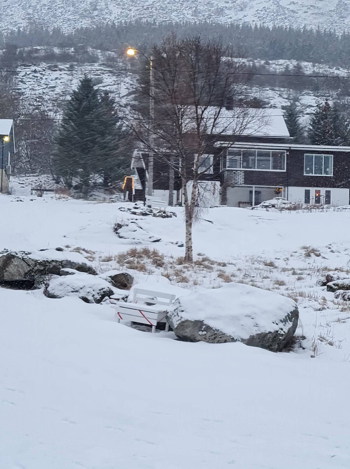 Selamat datang di Heimly! Apartemen yang nyaman di sayapnya sendiri dengan pintu masuknya sendiri. Paling cocok untuk satu atau dua orang. Perabotan nyaman dengan ketinggian langit - langit tinggi di ruang tamu. Termasuk lorong, kamar mandi, 1 kamar tidur, ruang tamu dan dapur. Teras pribadi kecil. Parkir untuk 1 mobil tepat di dekat pintu masuk. Pemiliknya tinggal di apartemen utama rumah ini. Apartemen ini berlokasi di Ørsnes, sekitar 9 km. dari kota Svolvær. Tempat lain di dekatnya: Kabelvåg 5 km. Henningsvær 15 km Bandara Harstad/Narvik Evenes 174 km Oh di Lofoten 120 km.