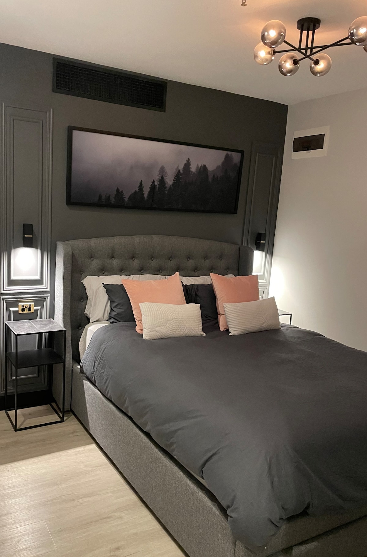 Let the light flood in through the floor-to-ceiling windows that lead to the relaxing balcony. This studio apartment has been cleverly designed with a separate bedroom area. The space has been enhanced with statement wallpaper and lighting. Modern kitchen and bathroom, free parking in an allocated spot behind the building. Everything is modern and set for relaxing living. Super fast internet.