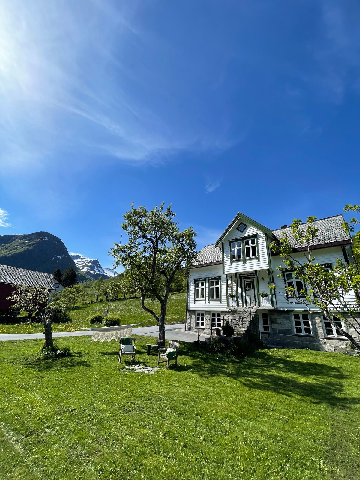 Rumah yang menyenangkan di dekat fjord dan pegunungan dengan halaman luar yang indah