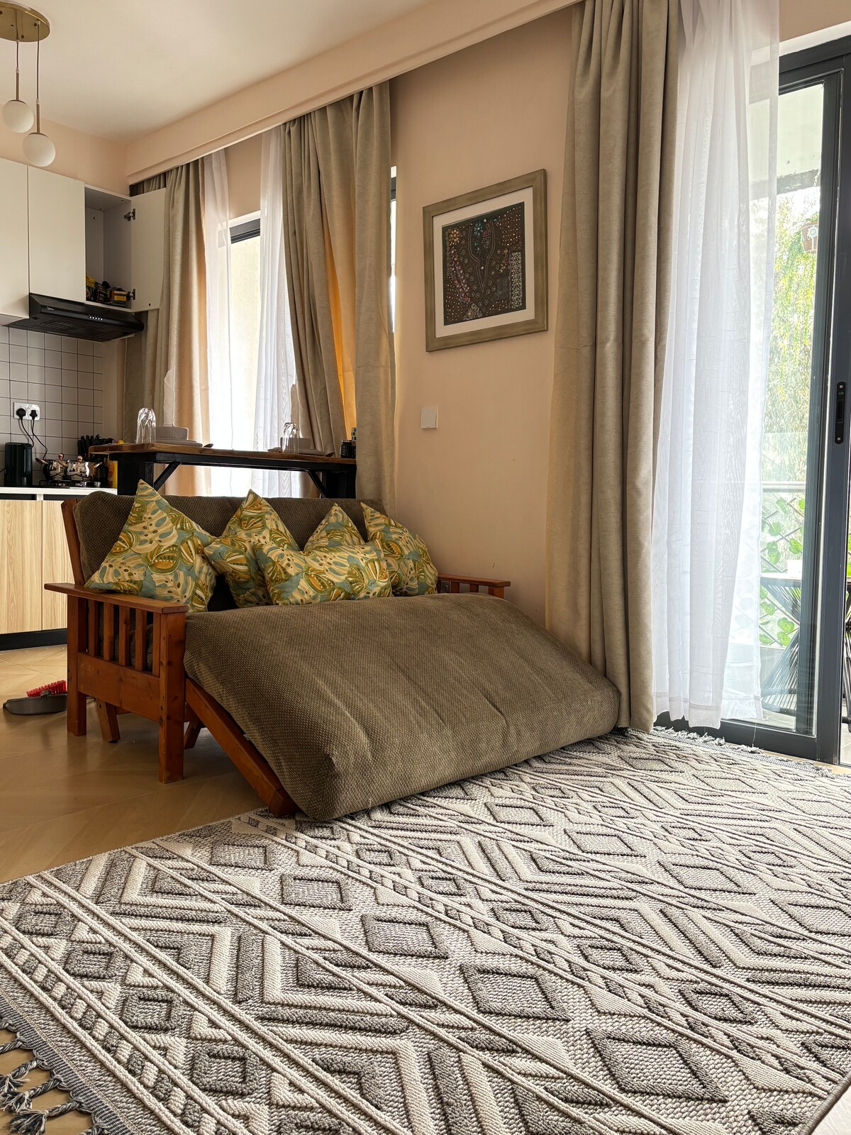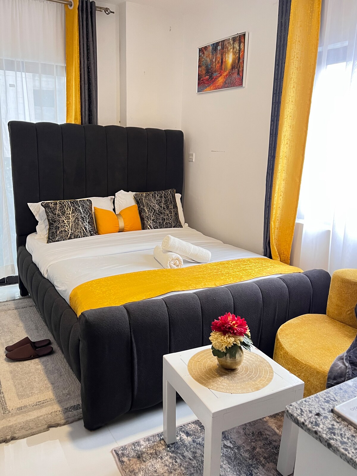 Studio bergaya ini menawarkan tata letak terbuka yang cerah, dekorasi yang chic, dan suasana menenangkan yang terasa seperti di rumah. Sangat cocok untuk masa inap jangka pendek dan jangka panjang, tempat ini memiliki dapur kecil yang dilengkapi dengan peralatan lengkap. Tamu menikmati WiFi cepat dan akses ke fasilitas premium di dalam kompleks apartemen yang aman. Apartemen ini terletak beberapa menit dari Bandara Internasional Jomo Kenyatta (JKIA), stasiun SGR, Taman Nasional Nairobi.