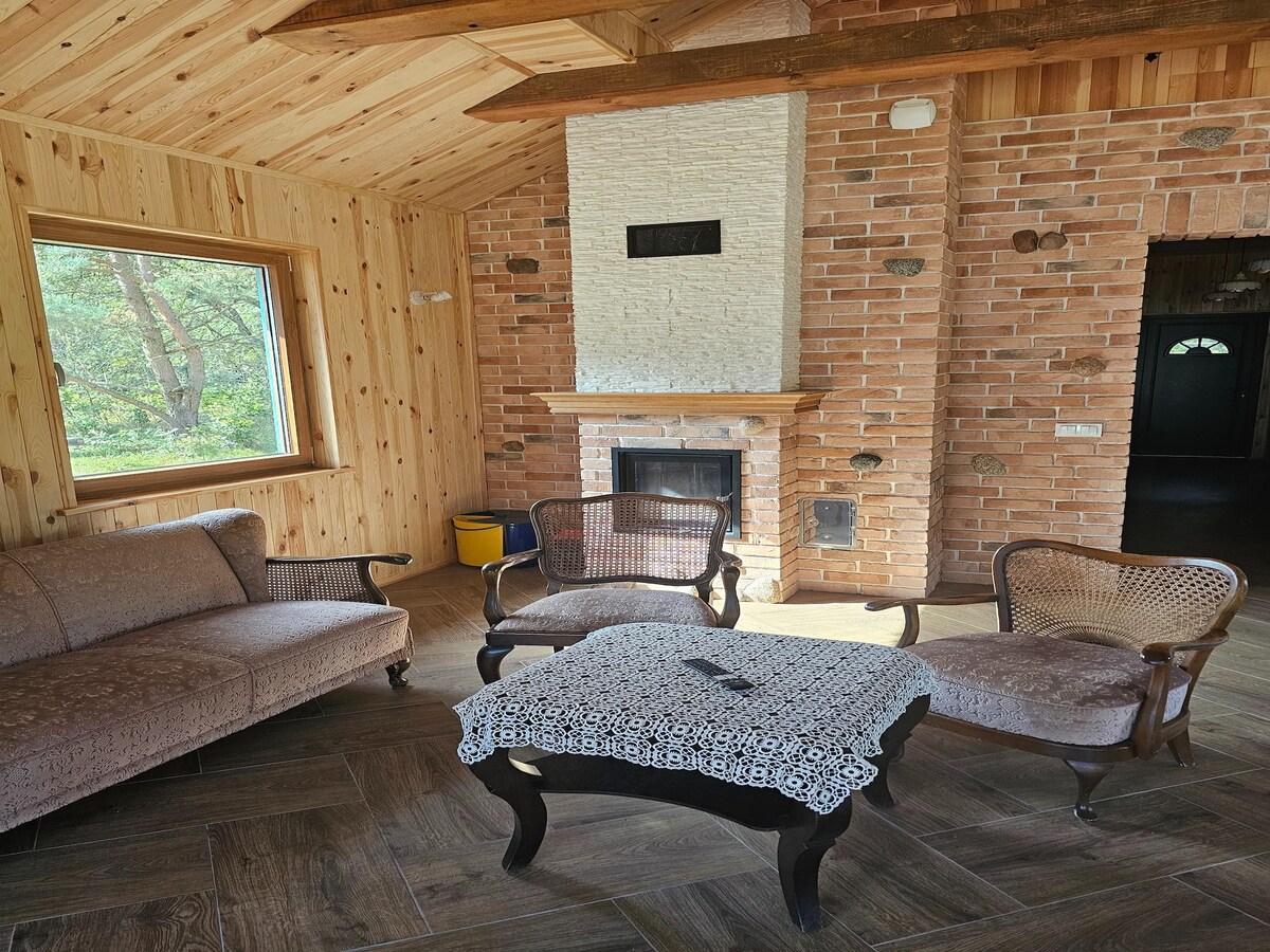Pondok ini berjarak 30 m dari danau dengan pantai kecil pribadi, dermaga, dan taman bermain. Kawasannya sangat menawan, air di danau bersih. Tempat yang sempurna untuk berlibur. Kami menyediakan kayak dan sepeda untuk tamu kami. Anda juga bisa menyewa papan SUP. Tempat ini cocok untuk pemancing serta untuk keluarga dengan anak-anak, anak-anak kecil memiliki taman bermain yang bisa mereka gunakan. Pondok kami memiliki ruang tamu dengan dapur kecil, kamar tidur terpisah, kamar mandi, dan teras besar. ada juga fire pit, barbecue. silakan