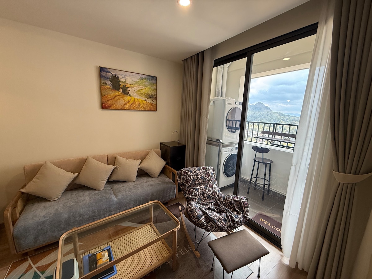 Apartemen Sapa 2BR yang nyaman, dekat pusat kota, pemandangan balkon.
