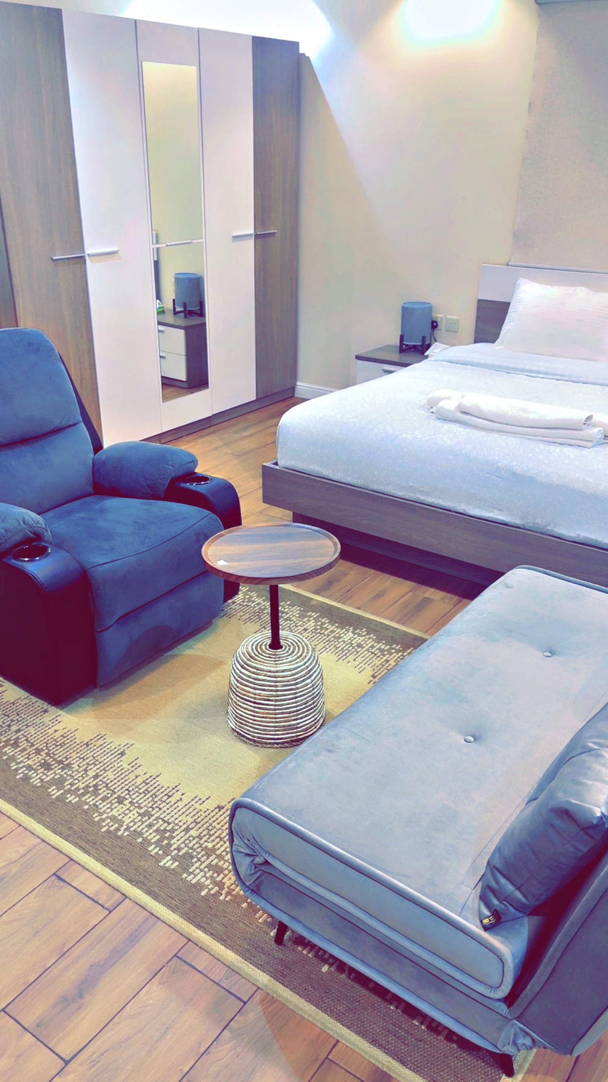 Nikmati masa inap Anda di serviced apartment kami yang damai dan berlokasi di pusat. Kami menawarkan layanan seperti hotel seperti (kebersihan rumah, tv, wifi, pengiriman bahan makanan gratis) serta menerima tamu dan bantuan yang ramah. Apartemen suite kami akan terasa seperti rumah sendiri dengan sedikit budaya Saudi.