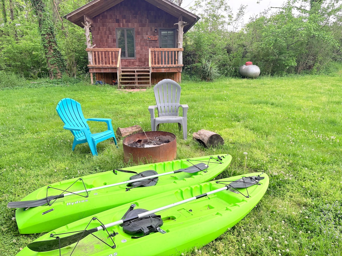 Escape to this modern tiny cabin on scenic Elk River, 5 min from downtown; 15 min from Jack Daniel's Distillery. Perfect for summer river adventures kayaks provided for paddling, fishing, or swimming. Relax by the waterfall or sway in the hammock. Cozy queen bed, high-speed WiFi for work/streaming, window AC, electric heat, indoor plumbing. Grill BBQs on porch, roast s'mores at fire pit. Free gourmet coffee from veteran-owned Montana Coffee Company. Pet-friendly (approval needed), sleeps 2.