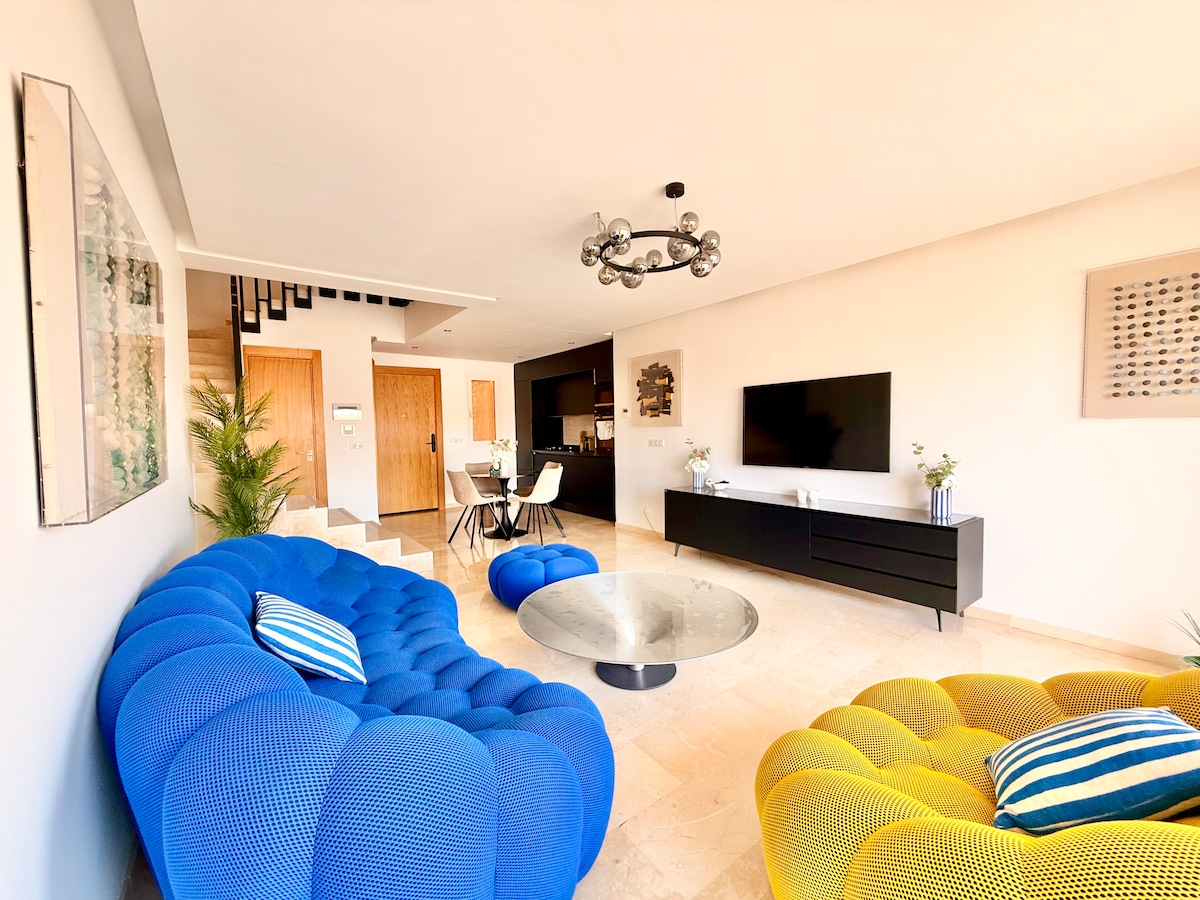 Apartemen Duplex di Taghazout dengan dua kamar tidur di lantai dua dan dapur dengan salon di lantai satu. Apartemen yang cerah dan luas, dirancang oleh arsitek lokal, memiliki dua teras dengan pemandangan laut. Kompleks ini juga memiliki dua kolam renang dan akses mudah (10 menit berjalan kaki) ke pantai setempat. Apartemen ini akan ideal untuk pasangan yang mencari kedamaian dan relaksasi serta untuk keluarga dengan anak-anak. Tempat yang sempurna untuk berselancar di banyak tempat berselancar di sekitar (Anchor Point, Banana Beach).