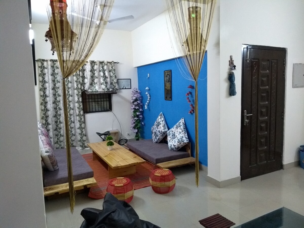 Rumah 🏡 yang jauh dari rumah! Nikmati pengalaman menginap Anda di rumah pribadi yang luas & damai. 🌟 Sangat cocok untuk keluarga, teman, pasangan & grup yang mencari penginapan yang nyaman dengan fasilitas modern, hanya 10 menit dari Taj Mahal ✨ Sorotan: ✅ AC. ✅ Parkir ✅ Wi-Fi 5G cepat ✅ TV LCD (Hotstar & OTT) Ruang tengah✅ yang luas (Sofa Set) Dapur ✅ Fungsional ✅ Meja Makan ✅ Akses Bebas Tangga: Aman & Ramah untuk Anak & Tamu Lanjut Usia Lokasi 📍Utama: • Taj Mahal (3KM), Benteng Agra (5KM) • Kafe & Restoran di dekatnya