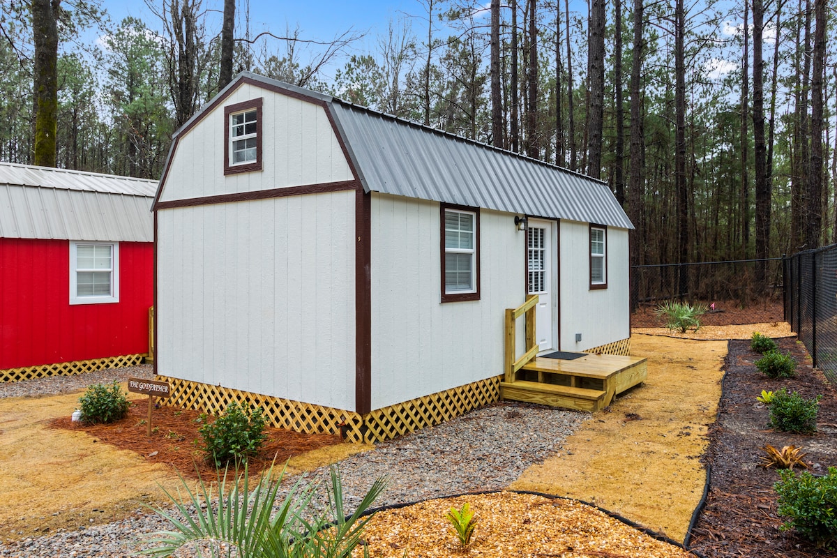 LIBURAN yang sempurna, hanya 15 menit dari Auburn, AL! Rumah Kecil yang Indah terletak di lingkungan yang tenang dan damai dan PEDESAAN di dalam Tiny Village. Rumah kecil seluas 288 kaki persegi ini memiliki pohon palem, tempat tidur gantung, perapian, dan tempat duduk luar ruangan yang indah. The Godfather menginspirasi rumah kecil sambil bersantai. Rumah ini memiliki 2 loteng dengan tempat tidur berukuran Queen, seprai lembut dan mewah, bantal empuk, dan bantal empuk. Anda akan menikmati semua kenyamanan rumah sambil terselip di Paradise Tiny Village kami. KOMUNITAS BERPAGAR & AKSES KEYPAD